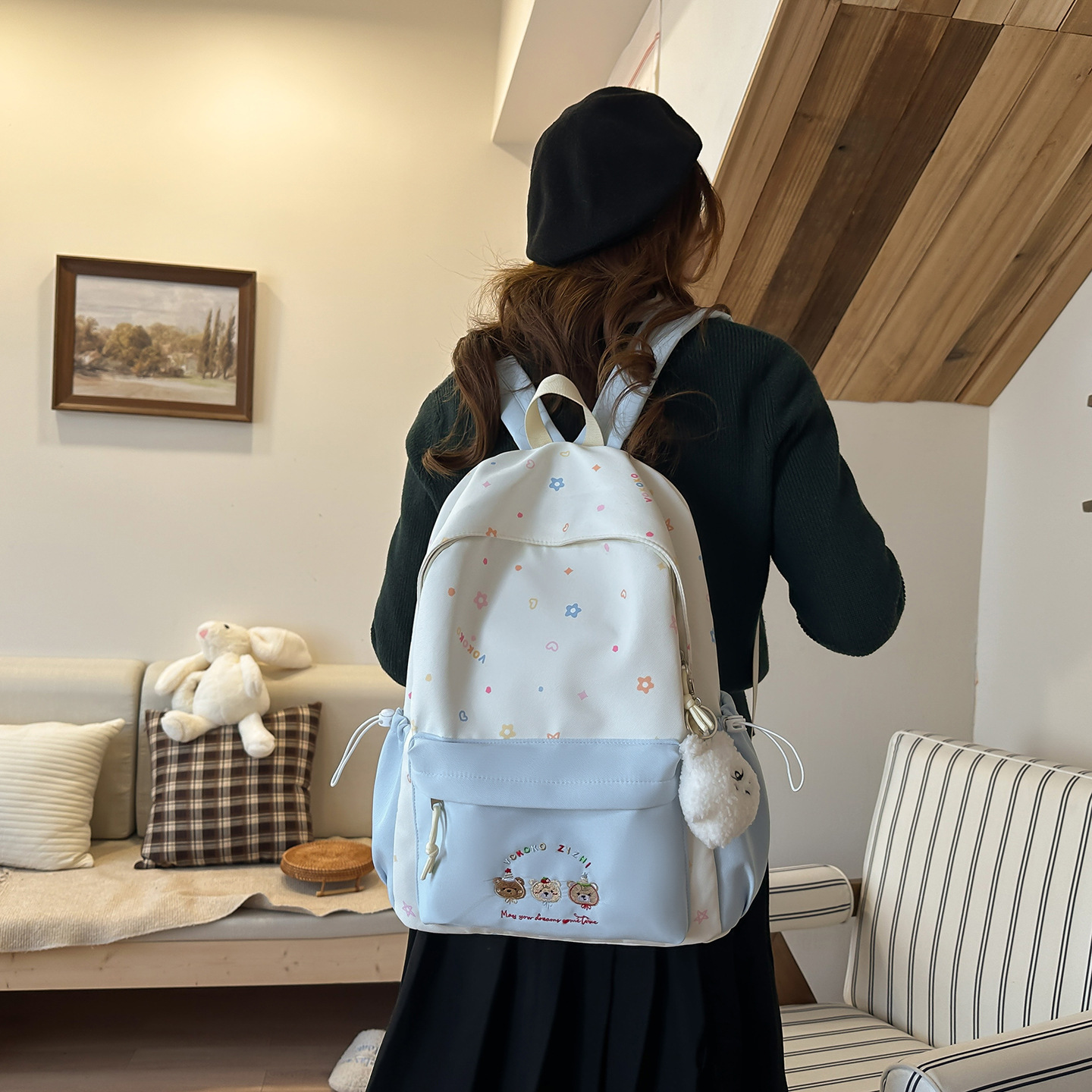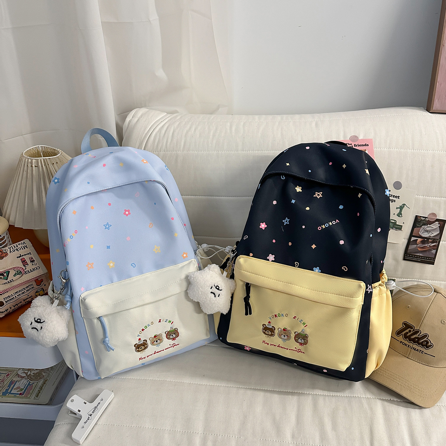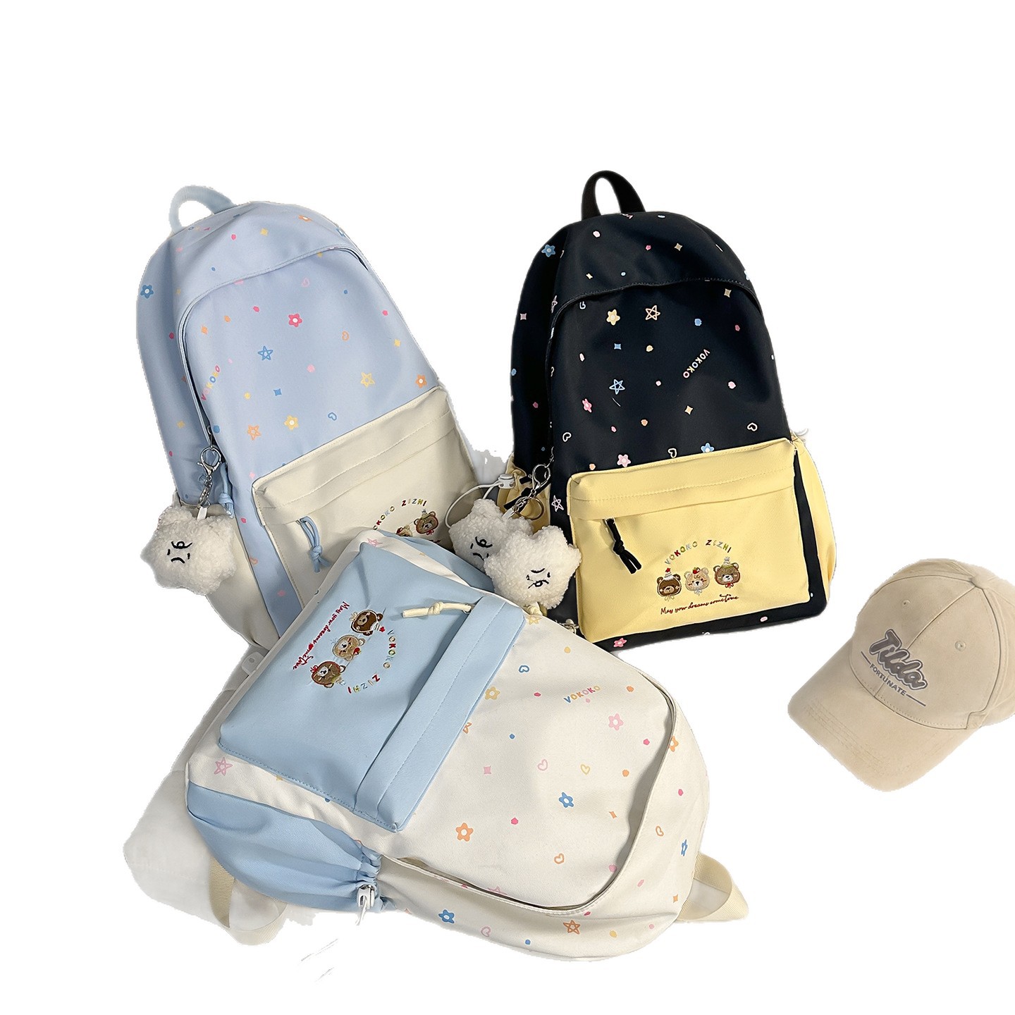 可爱星星双肩包女初高中学生书包大容量高颜值撞色刺绣轻便背包