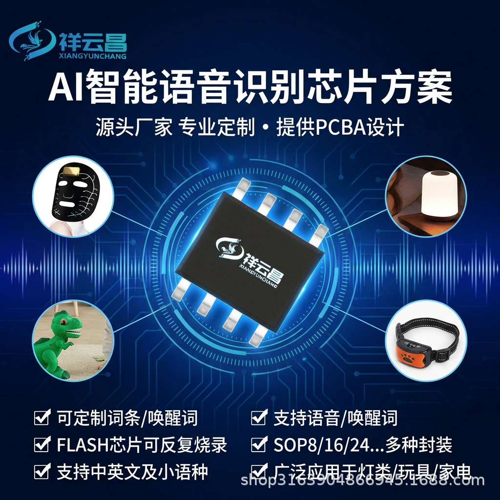al智能面膜声控IC方案调档位语音玩具眼镜闹钟语音识别IC语音芯片