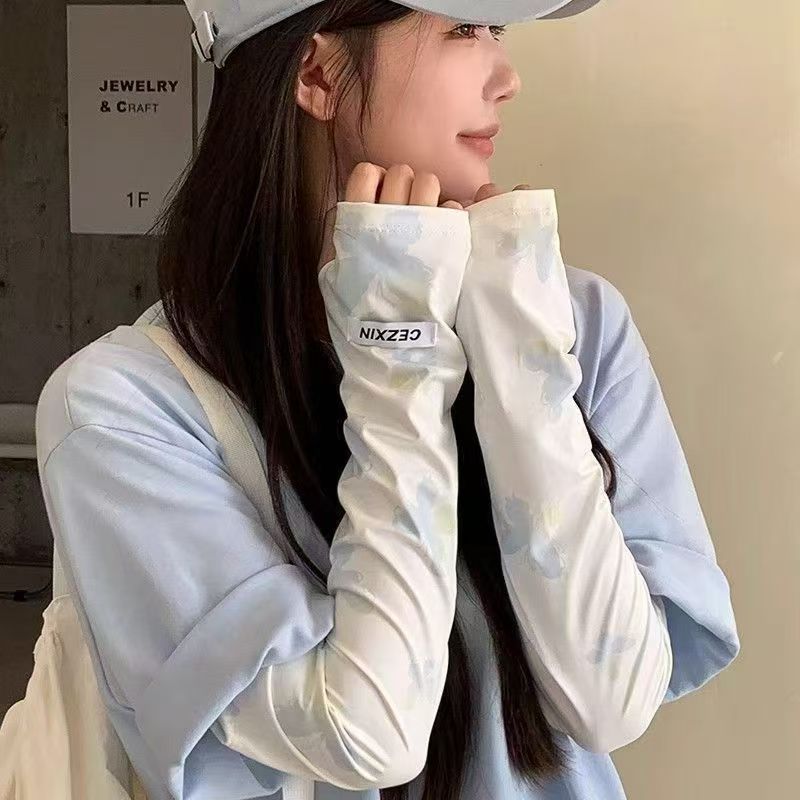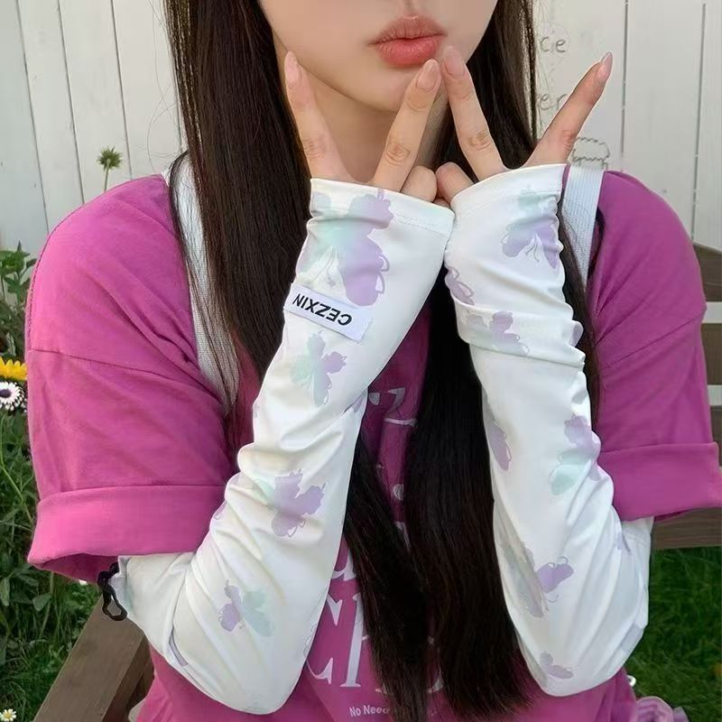 防晒冰袖女款夏季新款可爱防紫外线宽松手袖开车骑行手套冰丝袖套