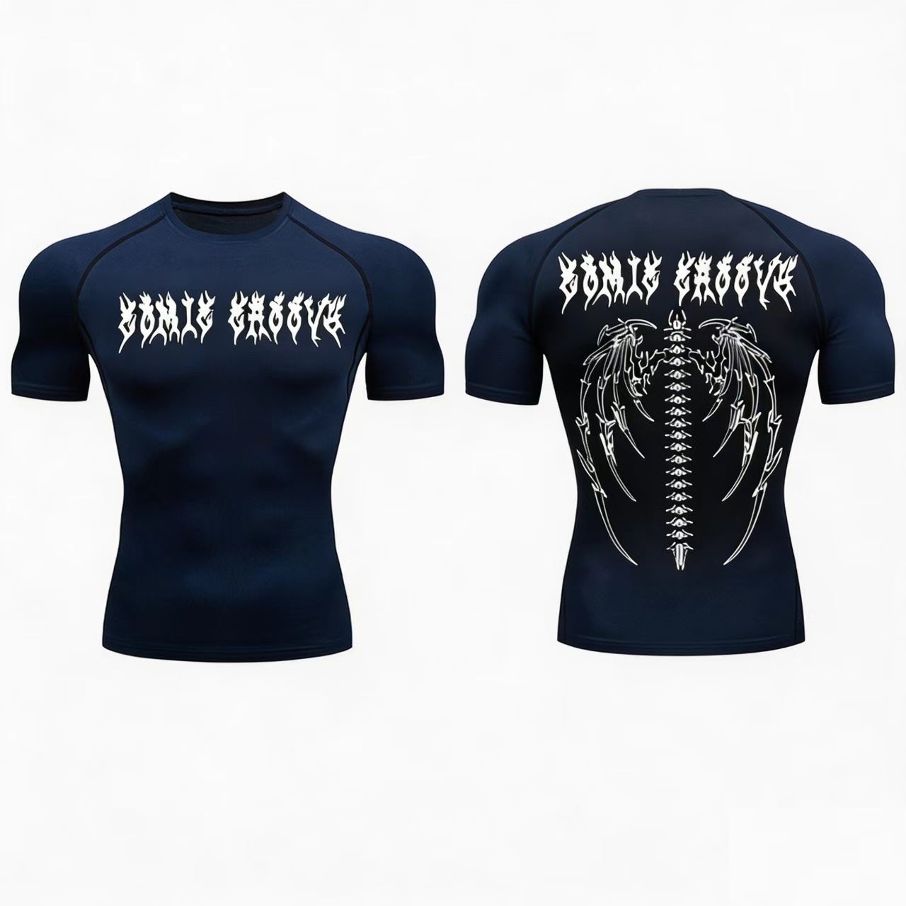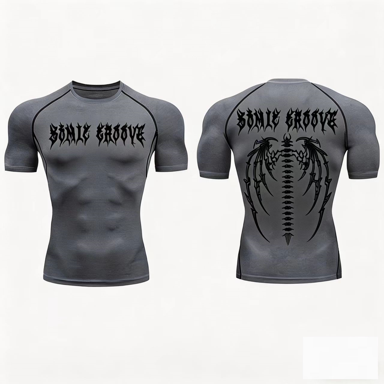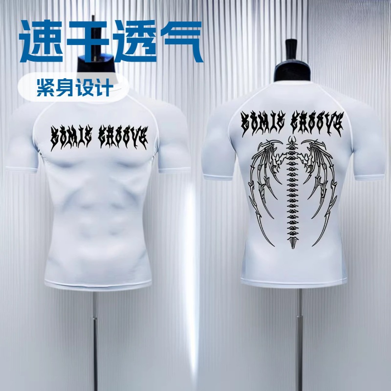 跨境T恤速干健身训练上衣紧身衣短袖高街复古暗黑潮牌Y2K字母男女