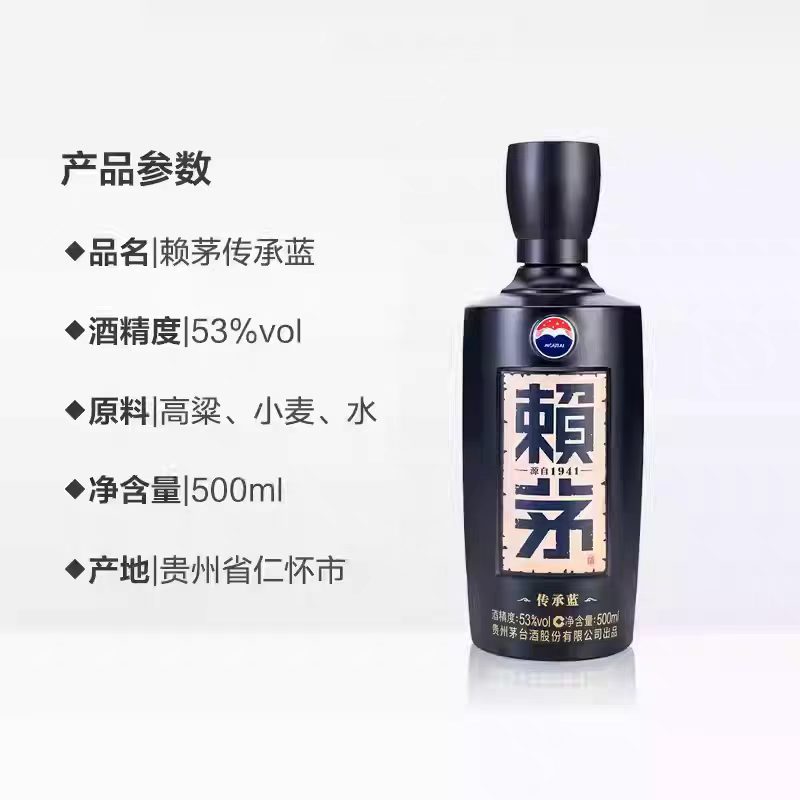赖茅传承蓝 53°酱香型白酒 500ml纯粮酿造纯粮固态