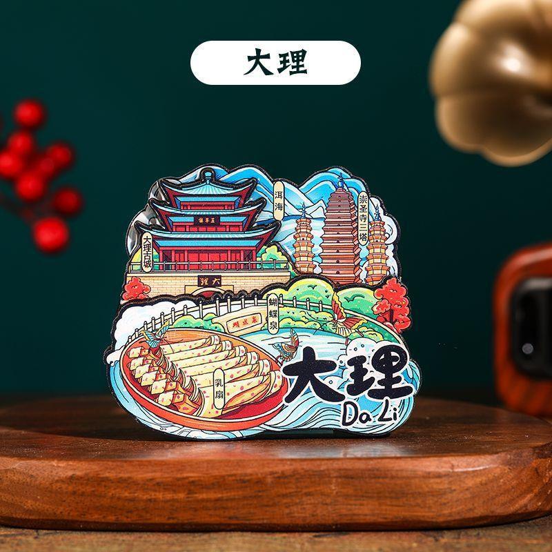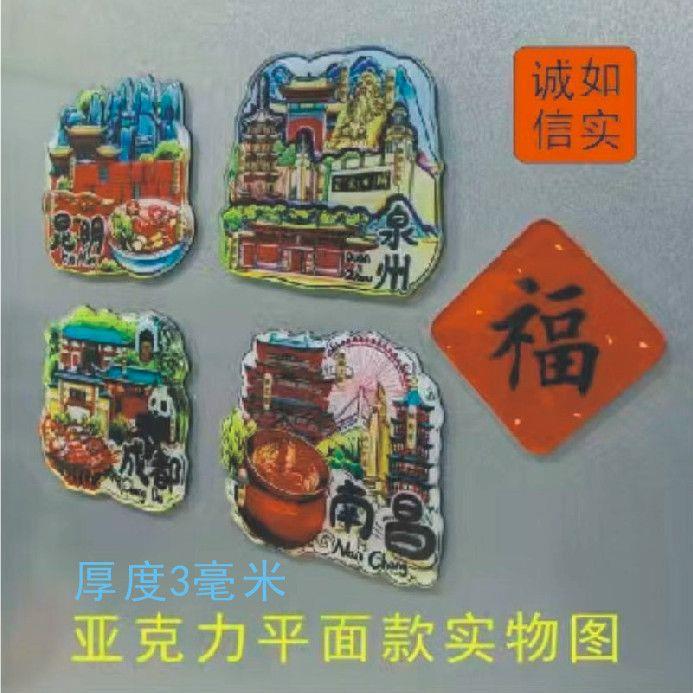 冰箱贴国潮有机玻璃几何图案亚克力城市中国大陆早教留言装饰磁贴
