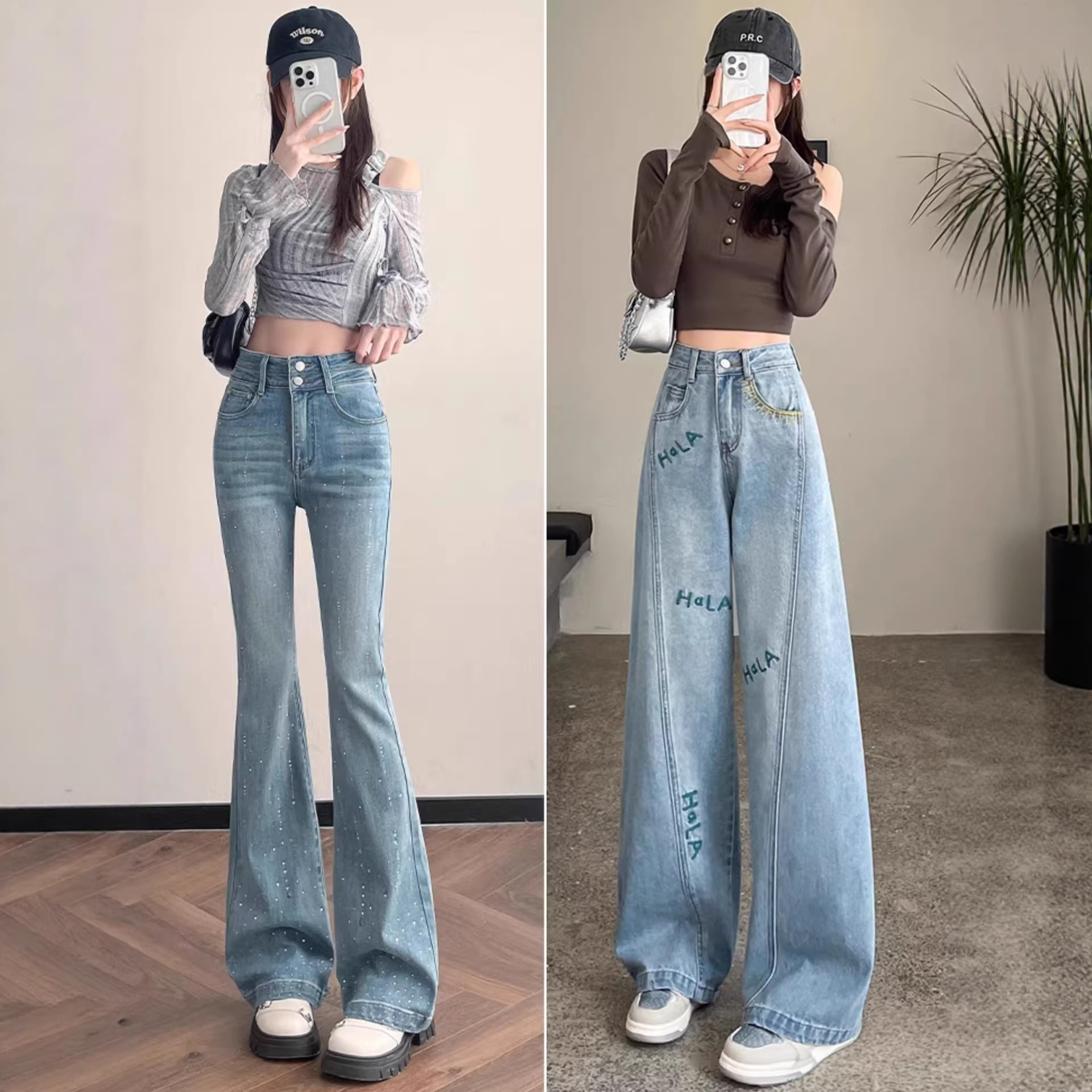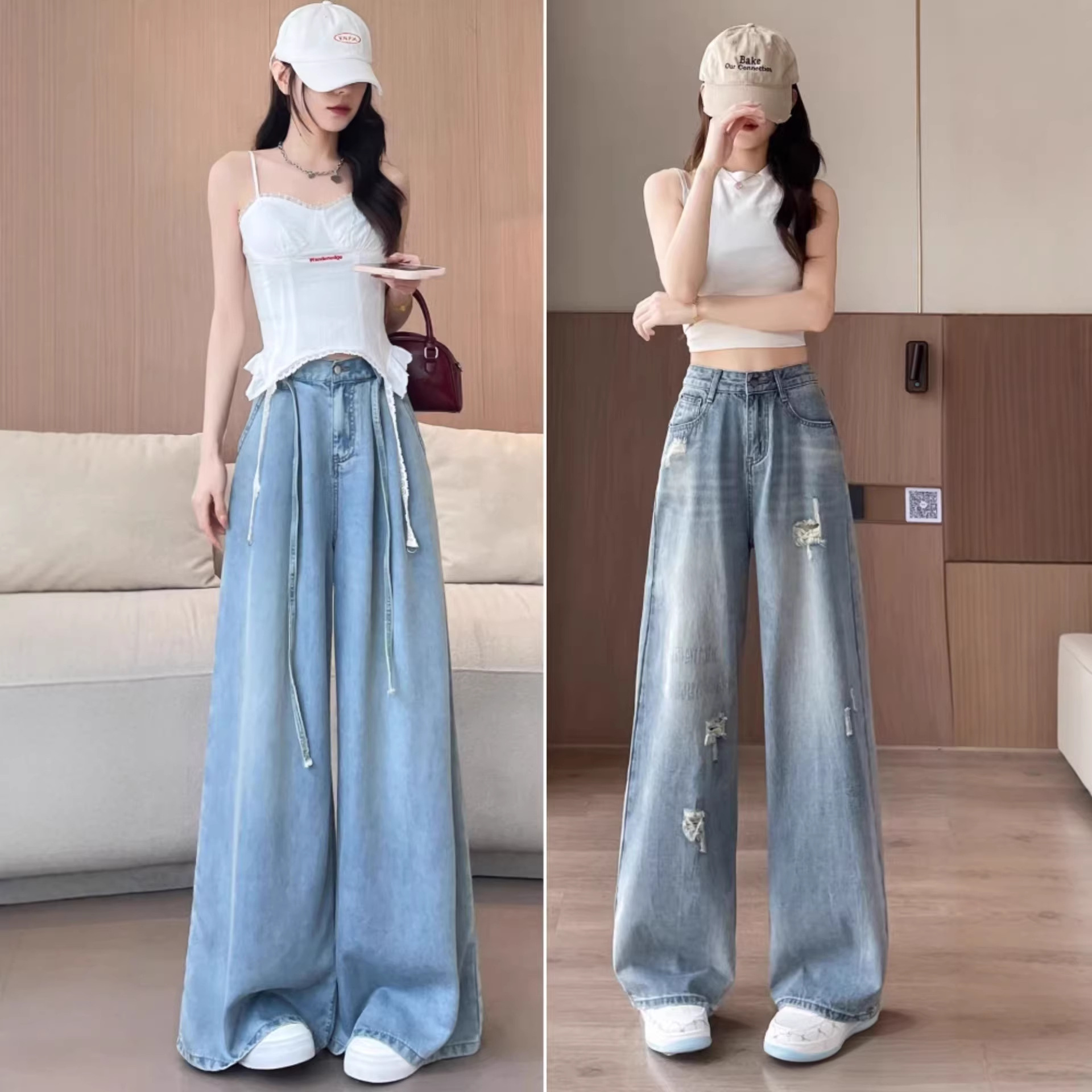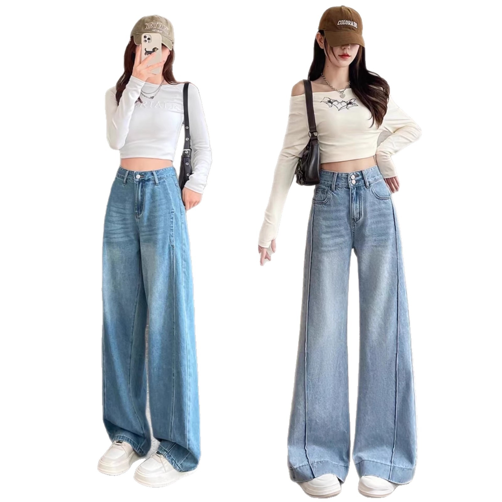 2026春季时尚新款牛仔裤女窄版高腰显瘦显高宽松舒适新款阔腿裤