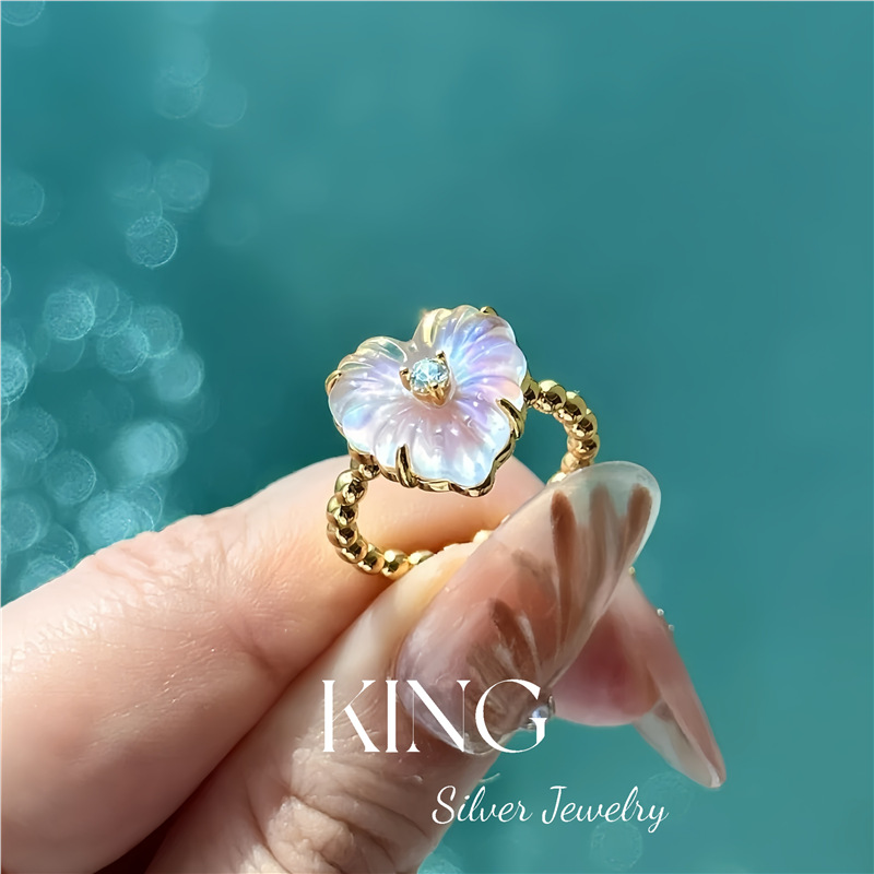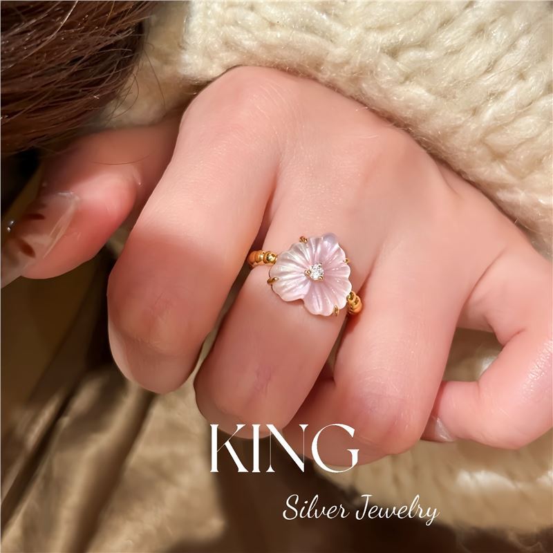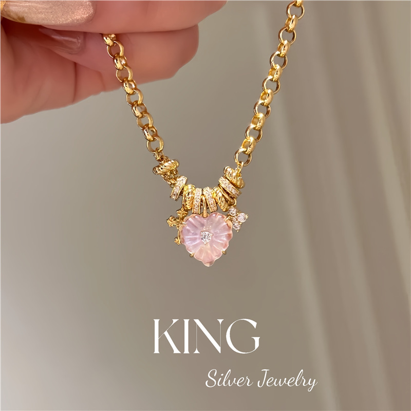 果冻粉心 | king银饰珠宝白水晶粉贝母爱心复古轻奢纯银手链戒指
