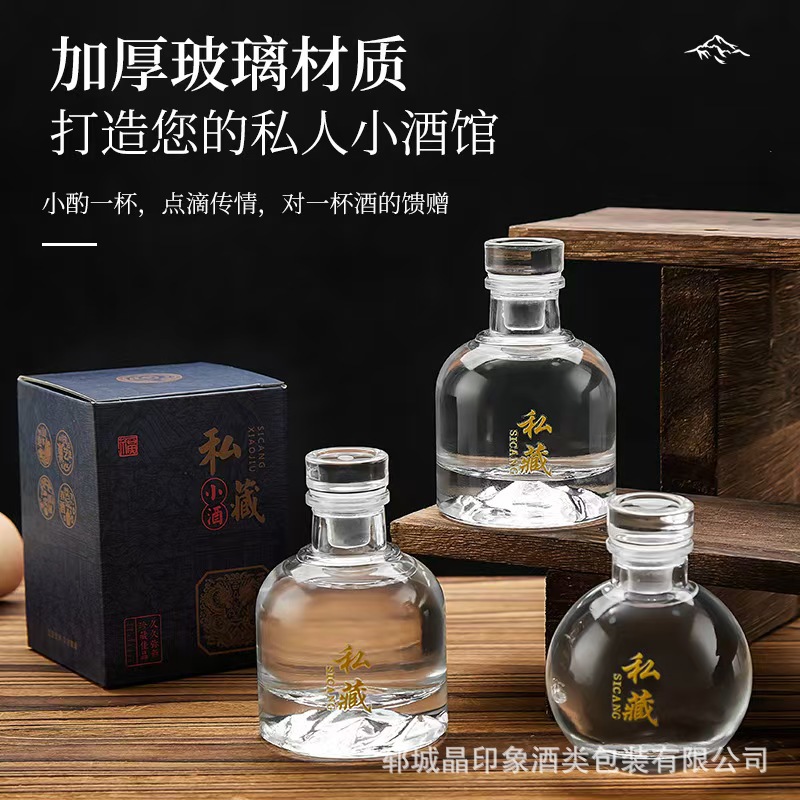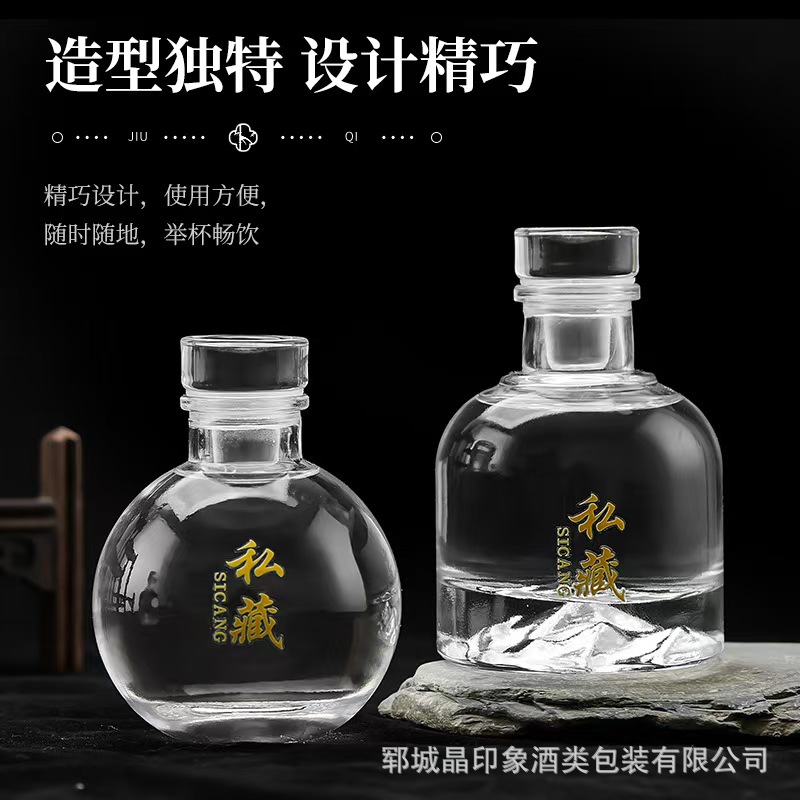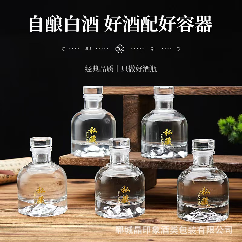 观山玻璃小酒瓶圆形白酒分装瓶空瓶自酿白酒储藏酒器密封玻璃酒瓶