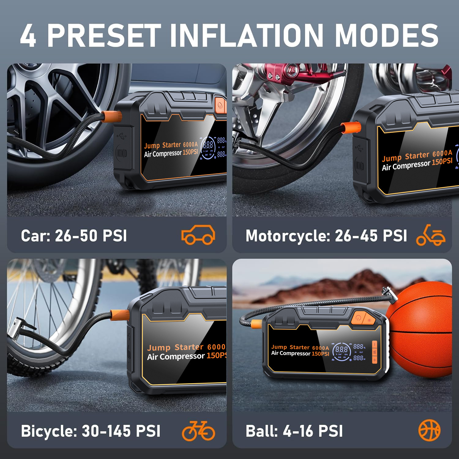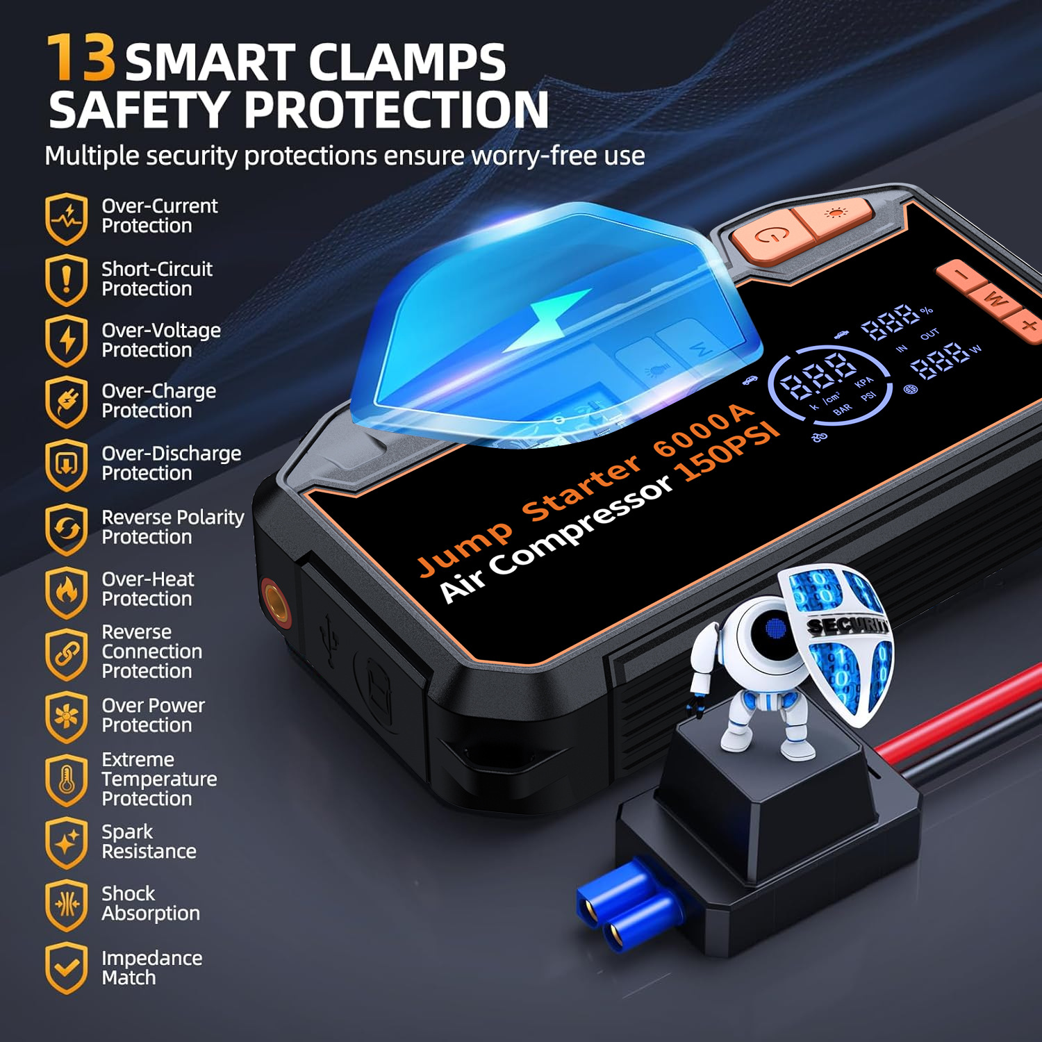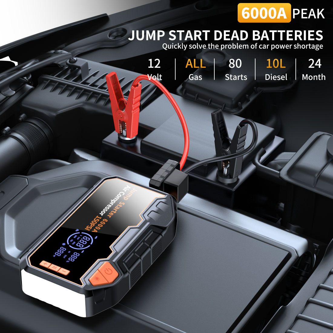 跨境新品汽车应急启动电源充气泵一体机电瓶紧急打火搭电宝车载充