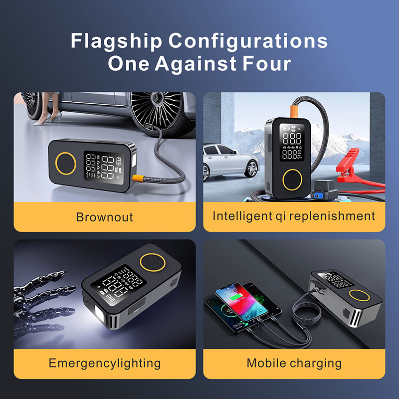 跨境新品汽车应急启动电源车载充气泵一体机强力搭电宝