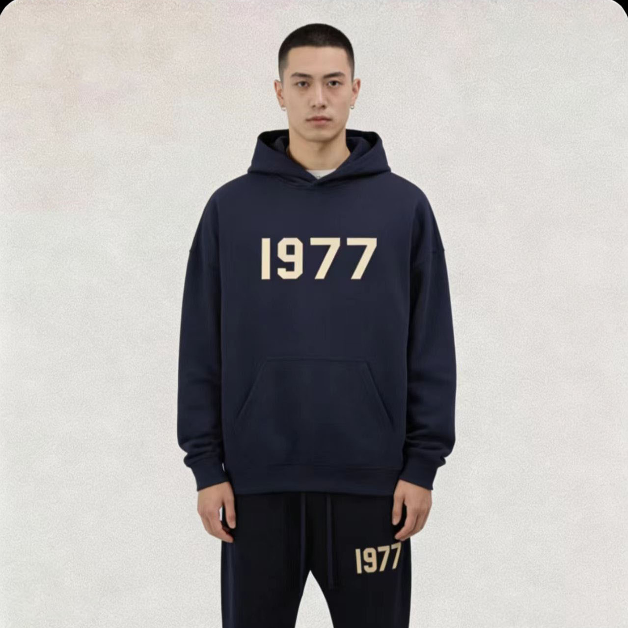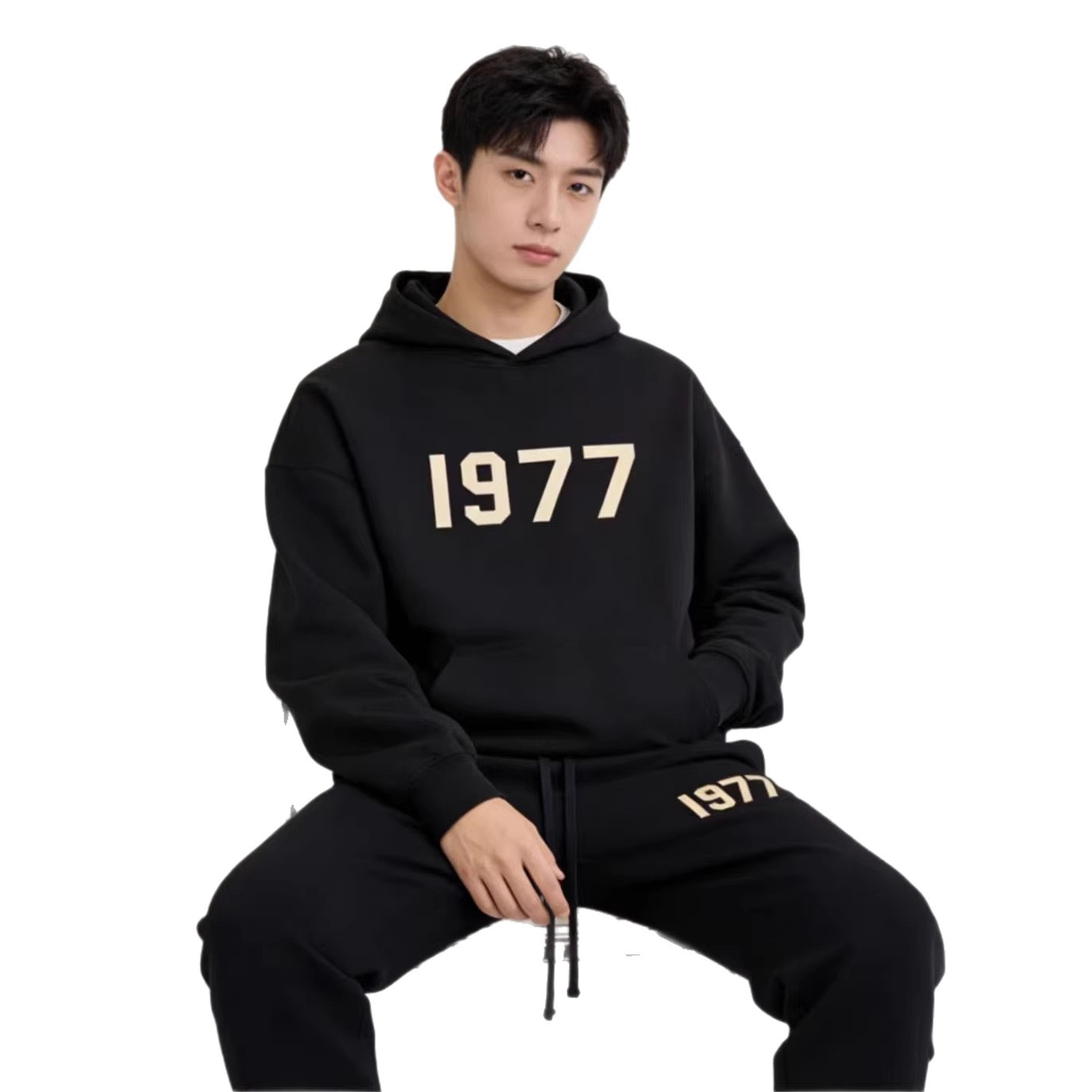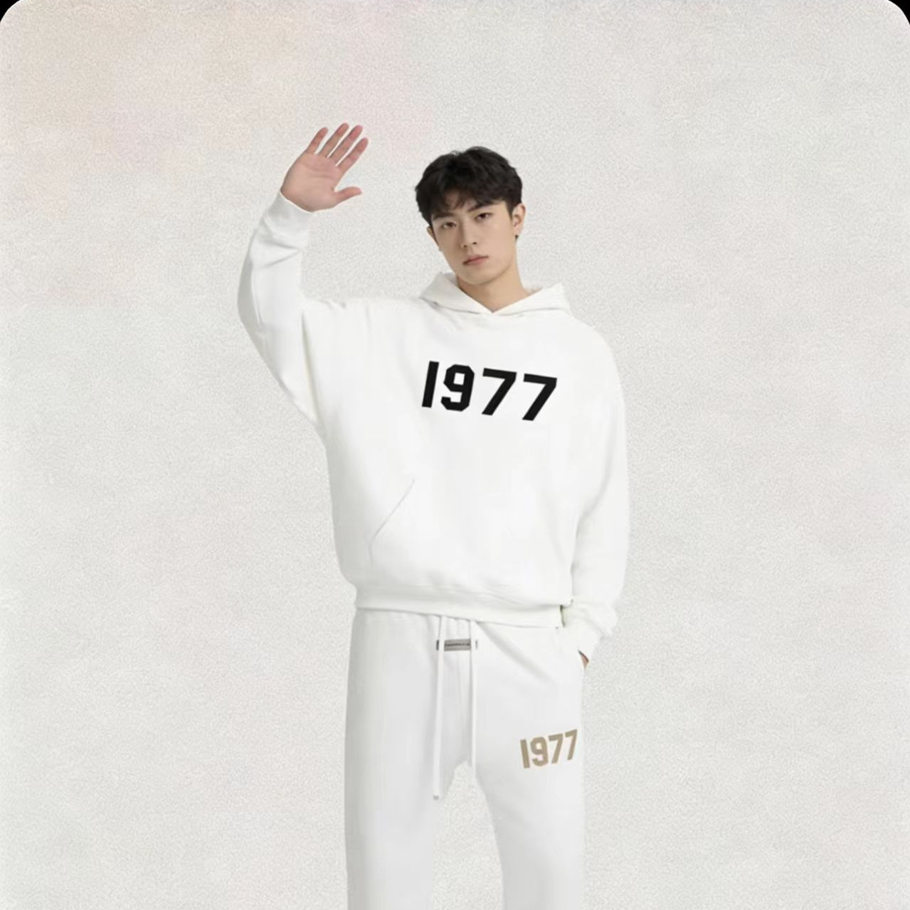 新款韩系简约纯色套装日常休闲 百搭男女同款显瘦套装印花连帽衫