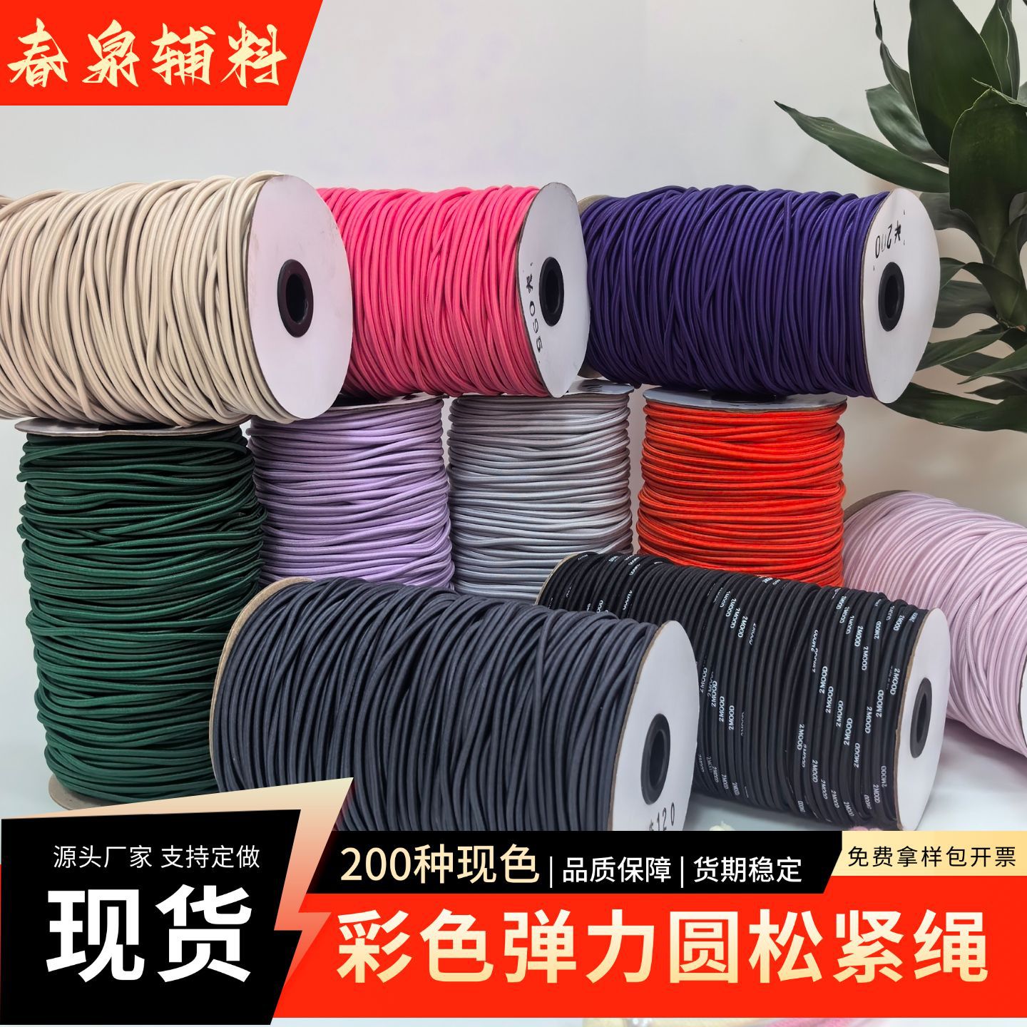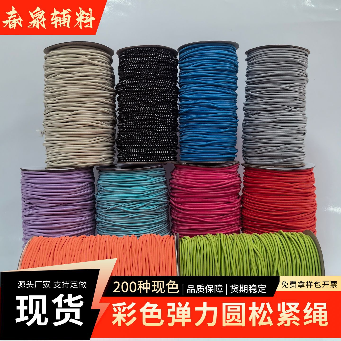 3.0mm圆松紧绳 弹力绳批发抽绳 彩色现货包芯乳胶橡筋 东莞源头厂