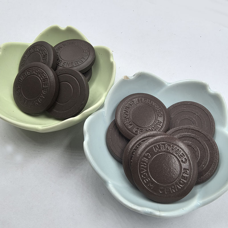 现货批发30mm咖啡色哑光亮面锗石片按摩床垫托玛琳片锗石圆片