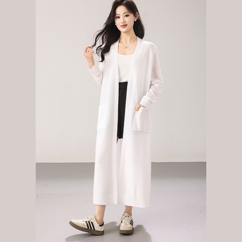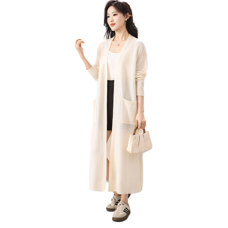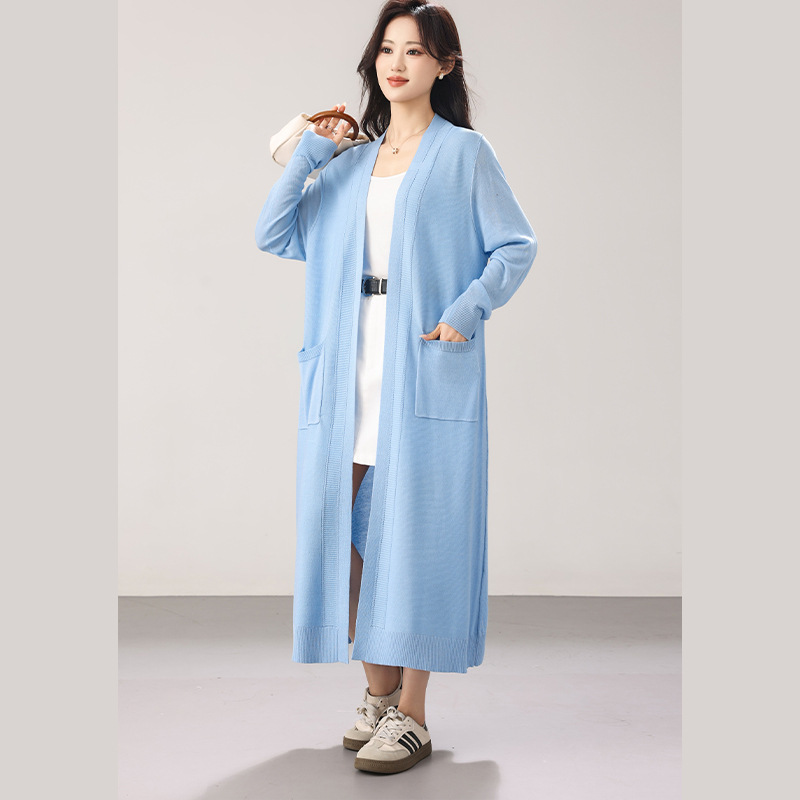 大码女装2026春夏新款加长款双口袋慵懒风气质针织开衫毛衣女外套