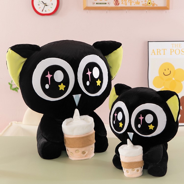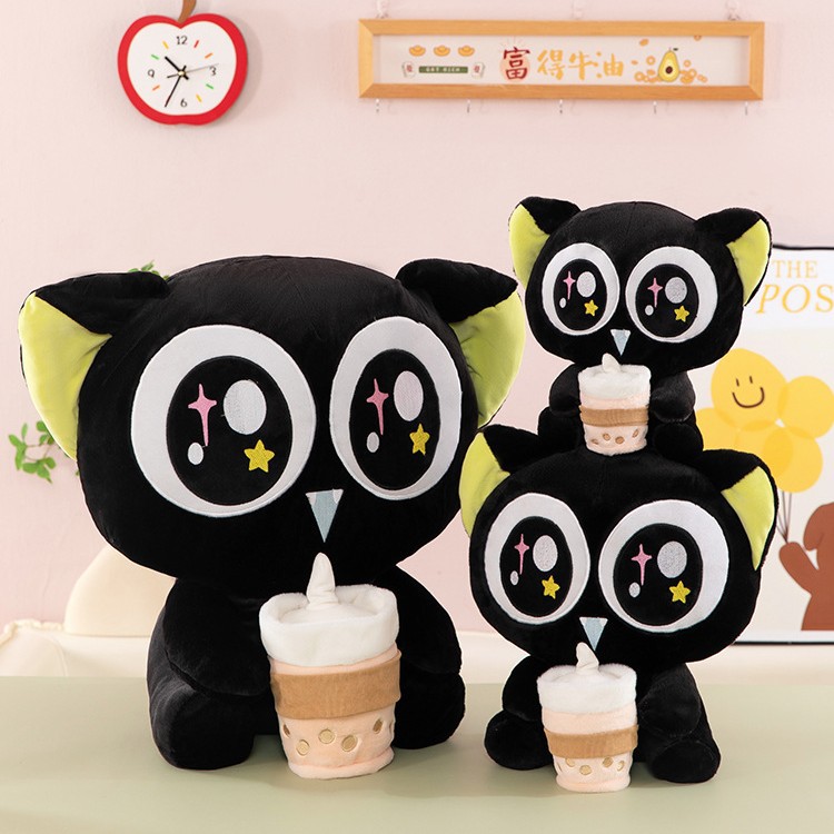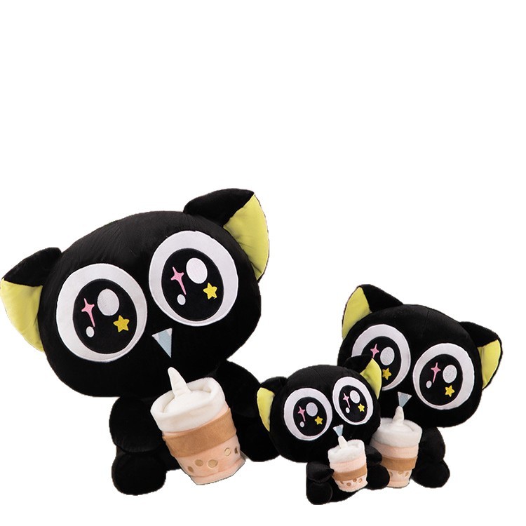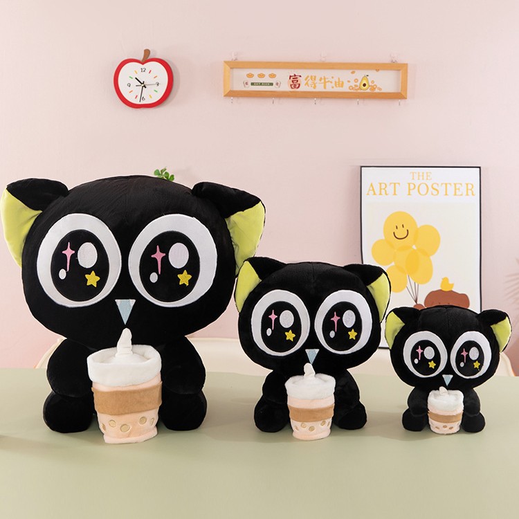 跨境可爱奶茶款罗小黑公仔毛绒玩具布娃娃睡觉玩偶奖品兑换抱枕女