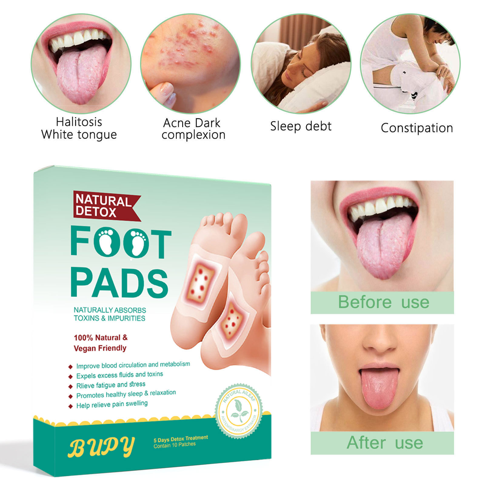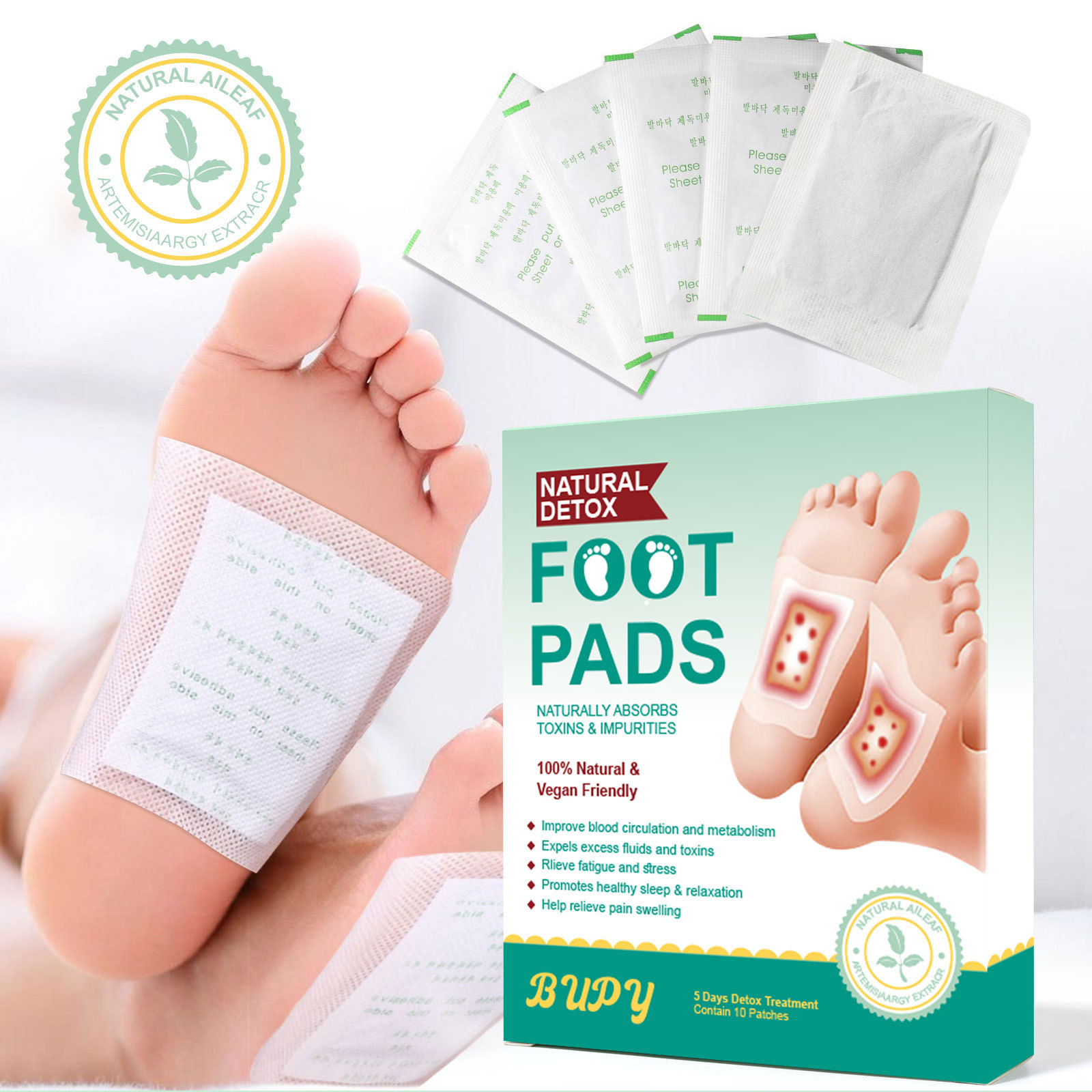 跨境Bupy艾草生姜足贴脚贴去湿帮助睡眠足部护理艾草足贴厂家批发