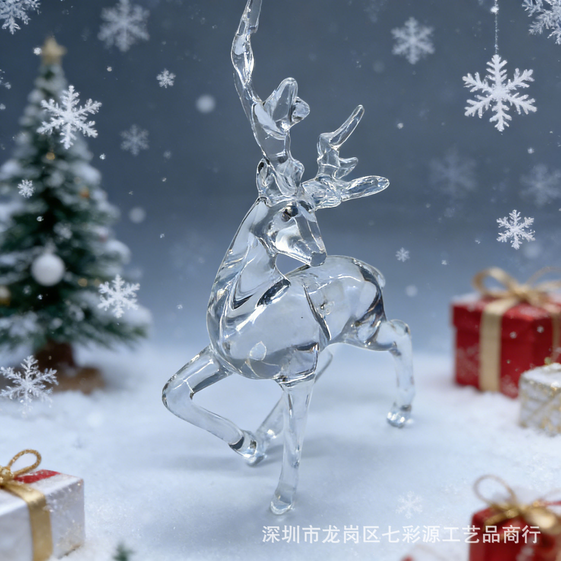跨境批发圣诞亚克力鹿圣诞装饰品圣诞树可爱摆件透明驯鹿圣诞麋鹿