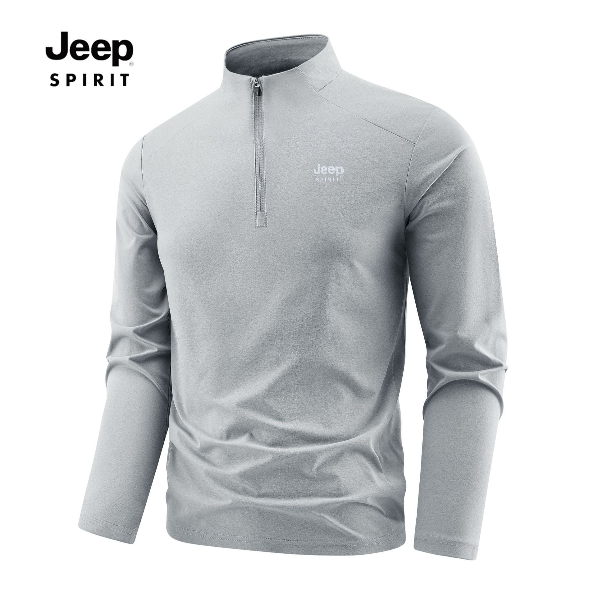 JEEP SPIRIT吉普长袖T恤男士立领卫衣男春秋季套头拉链内搭打底衫