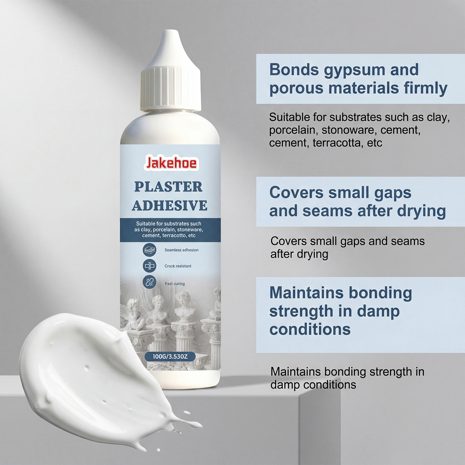JAKEHOE 石膏粘合剂 粘结牢固附着石膏及多孔材质石膏修补粘合剂