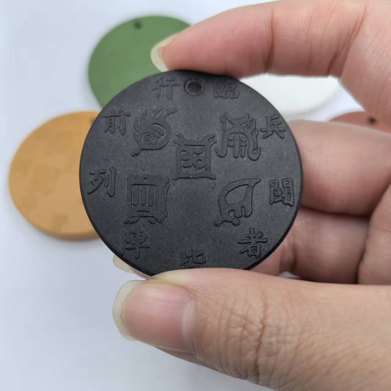 现货批发托玛琳能量片牌多种图案五行文化金木水火土锗石挂件