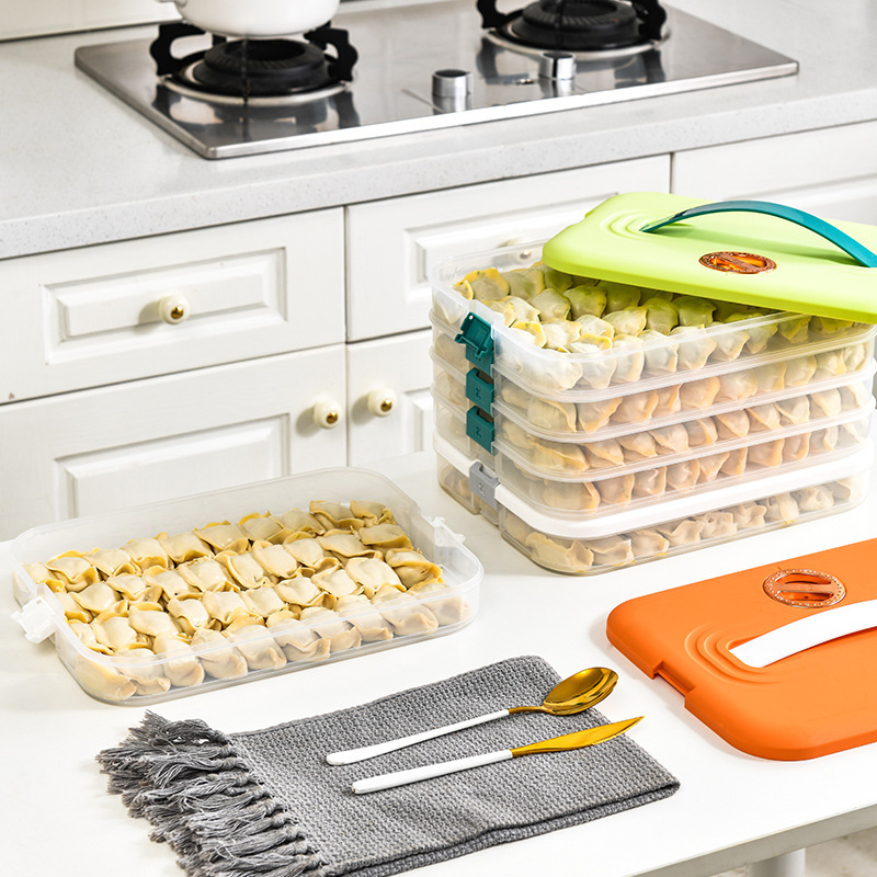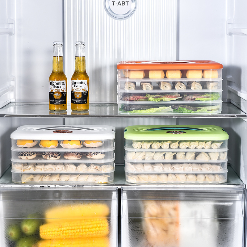 饺子盒家用大容量冷冻保鲜盒冰箱收纳多层带计时手提收纳透明盒子