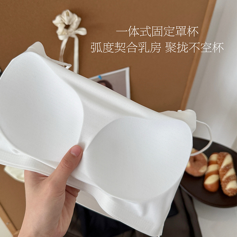 新款内衣女抹胸一字围美背无钢圈带胸垫吊带背心式裹胸一体固定杯