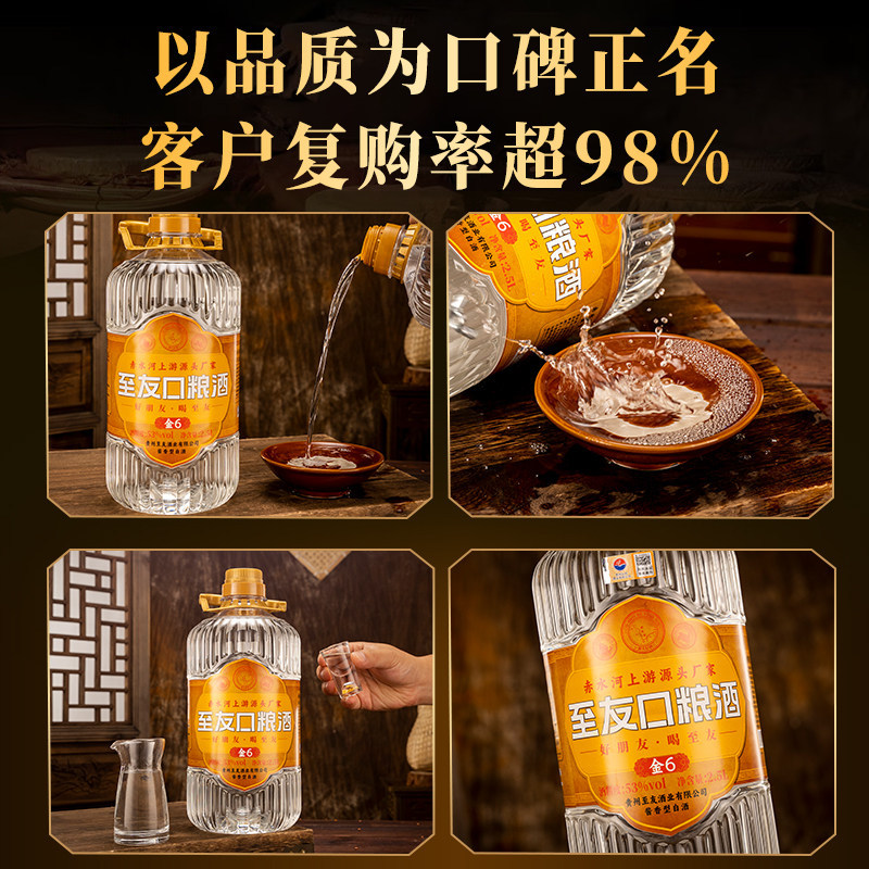 贵州非遗至友白酒金6纯粮食高粱酒酱香53度桶装散酒泡酒原浆老酒