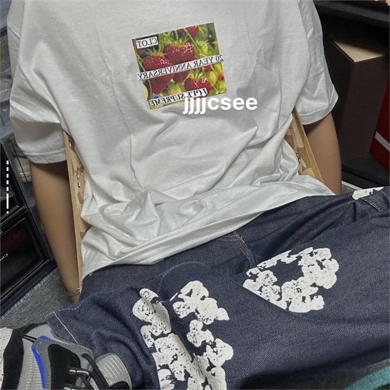 现货高版本C冠希上身23SS新款印花联名草莓图案圆领百搭T恤