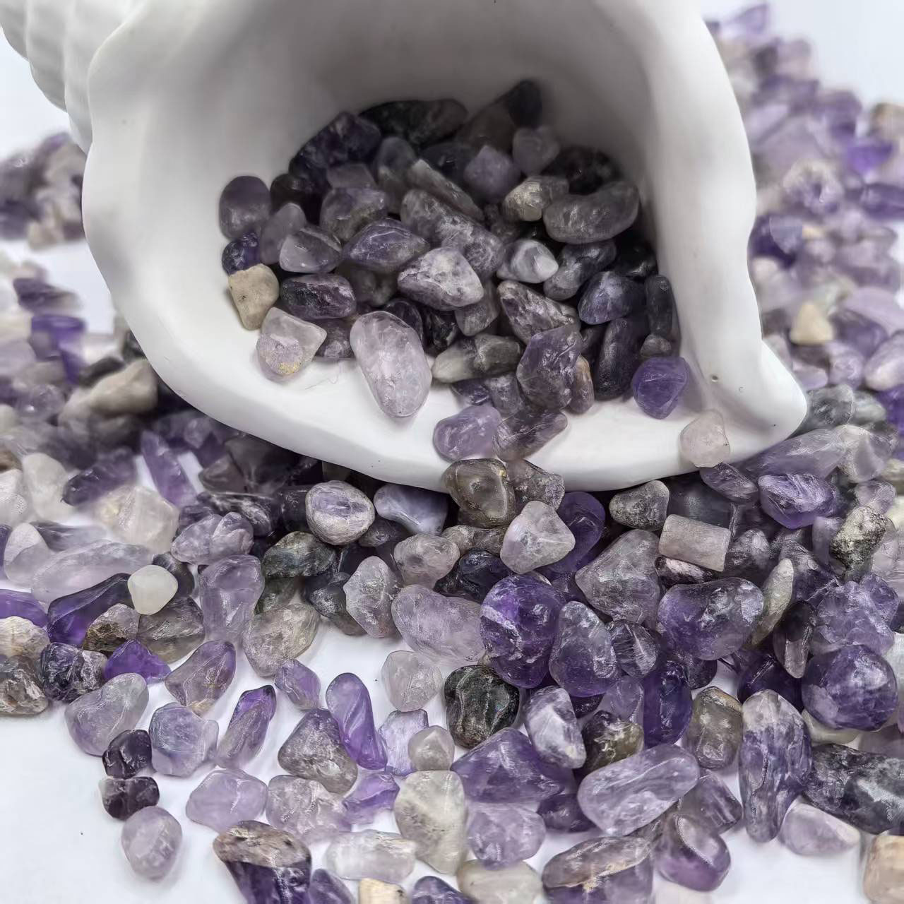 紫水晶颗粒3-6mm原矿石破碎水晶玛瑙鱼缸造景坐垫填充紫色碎石