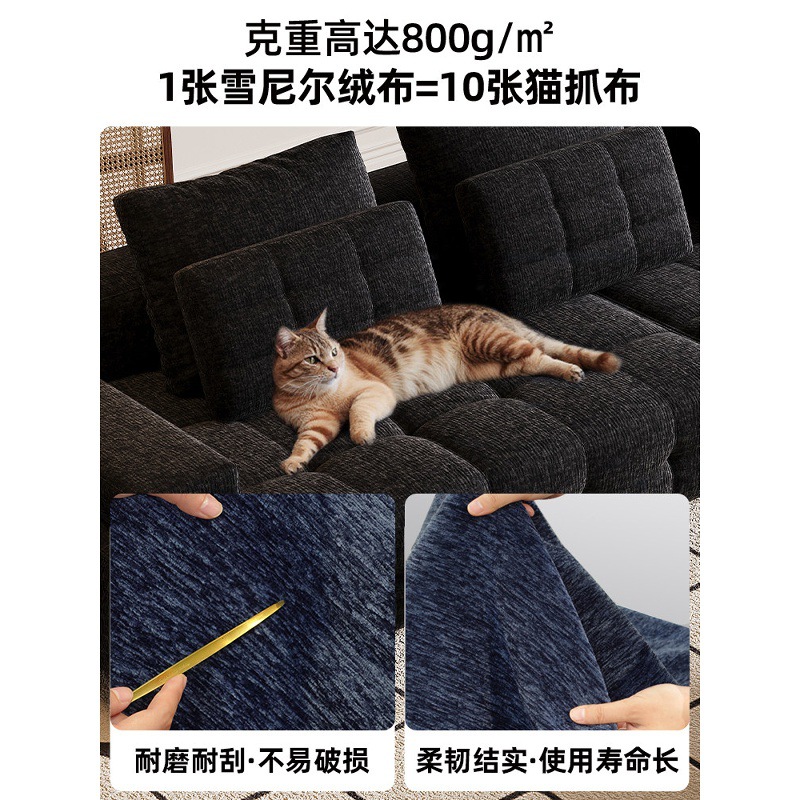 劳伦斯沙发意式极简客厅大小户型直排沙发奶油风雪尼尔绒布艺沙发