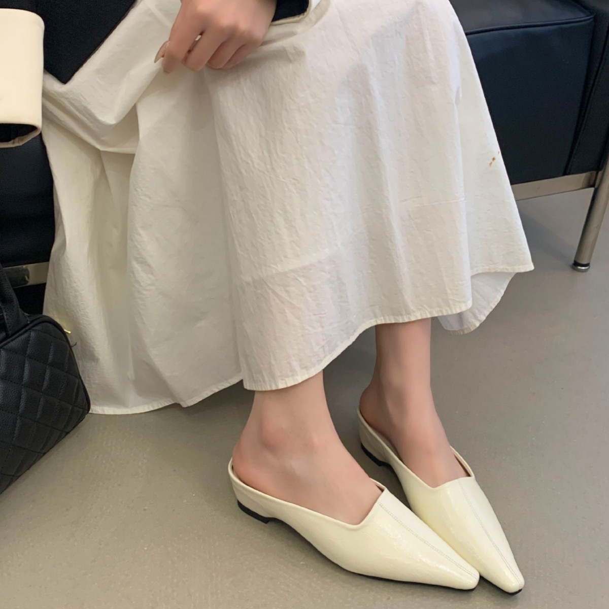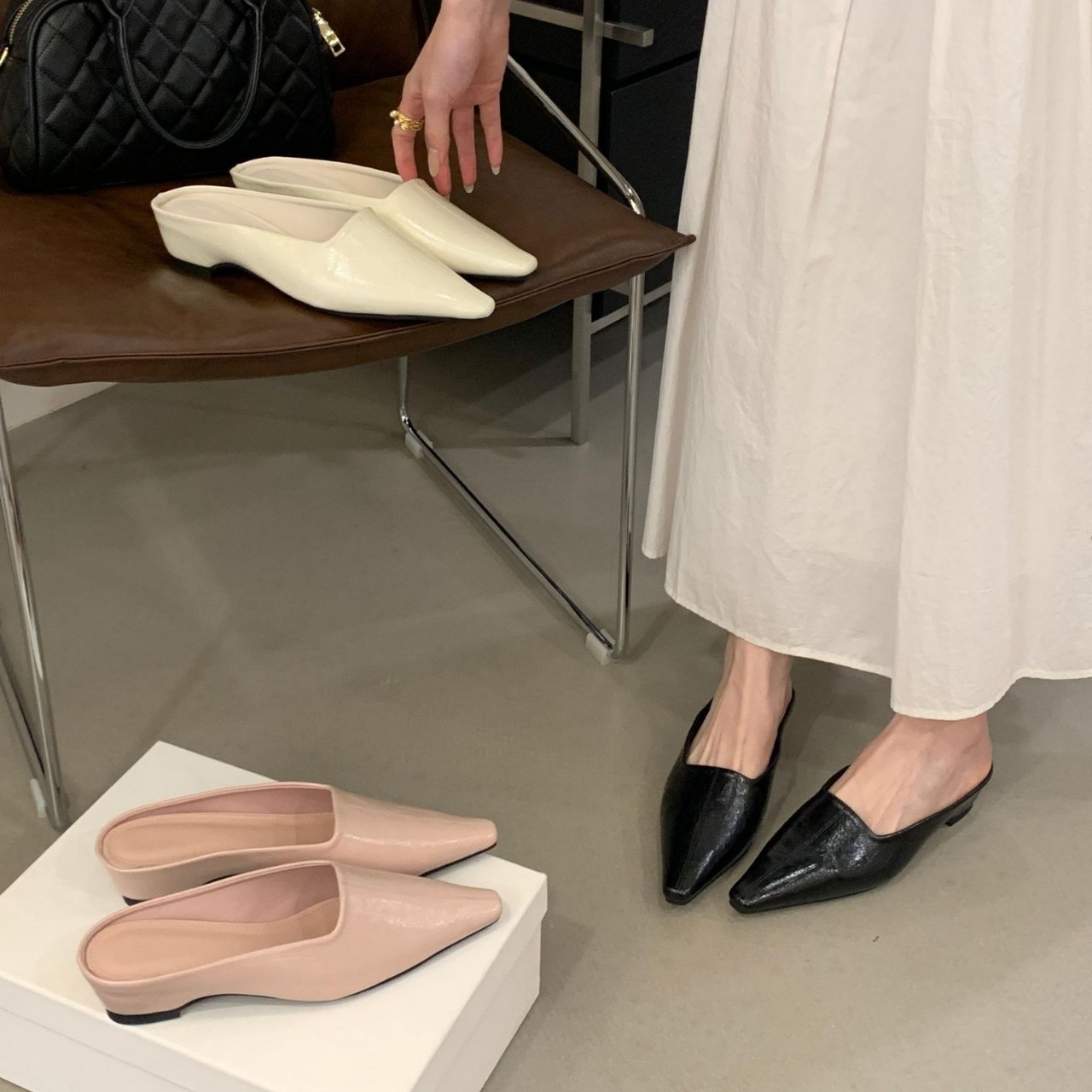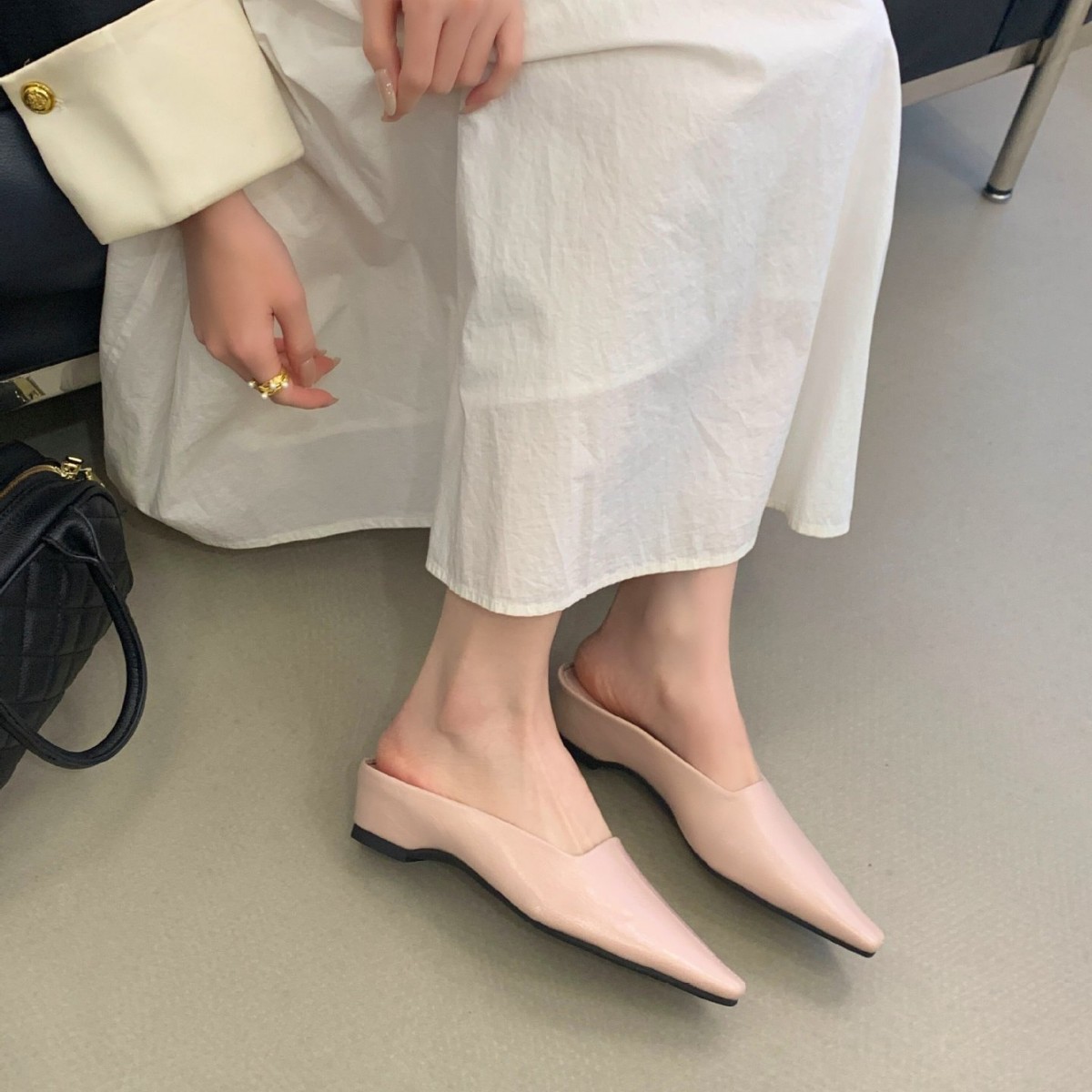 2026春季新款复古质感纯色女软皮半托坡跟小方头穿着舒适时尚女鞋