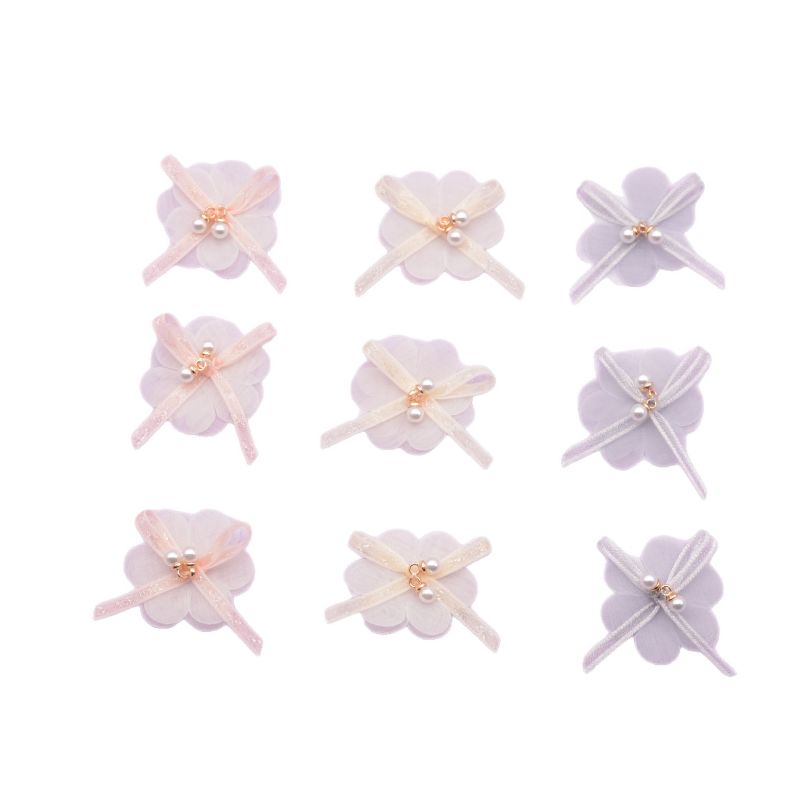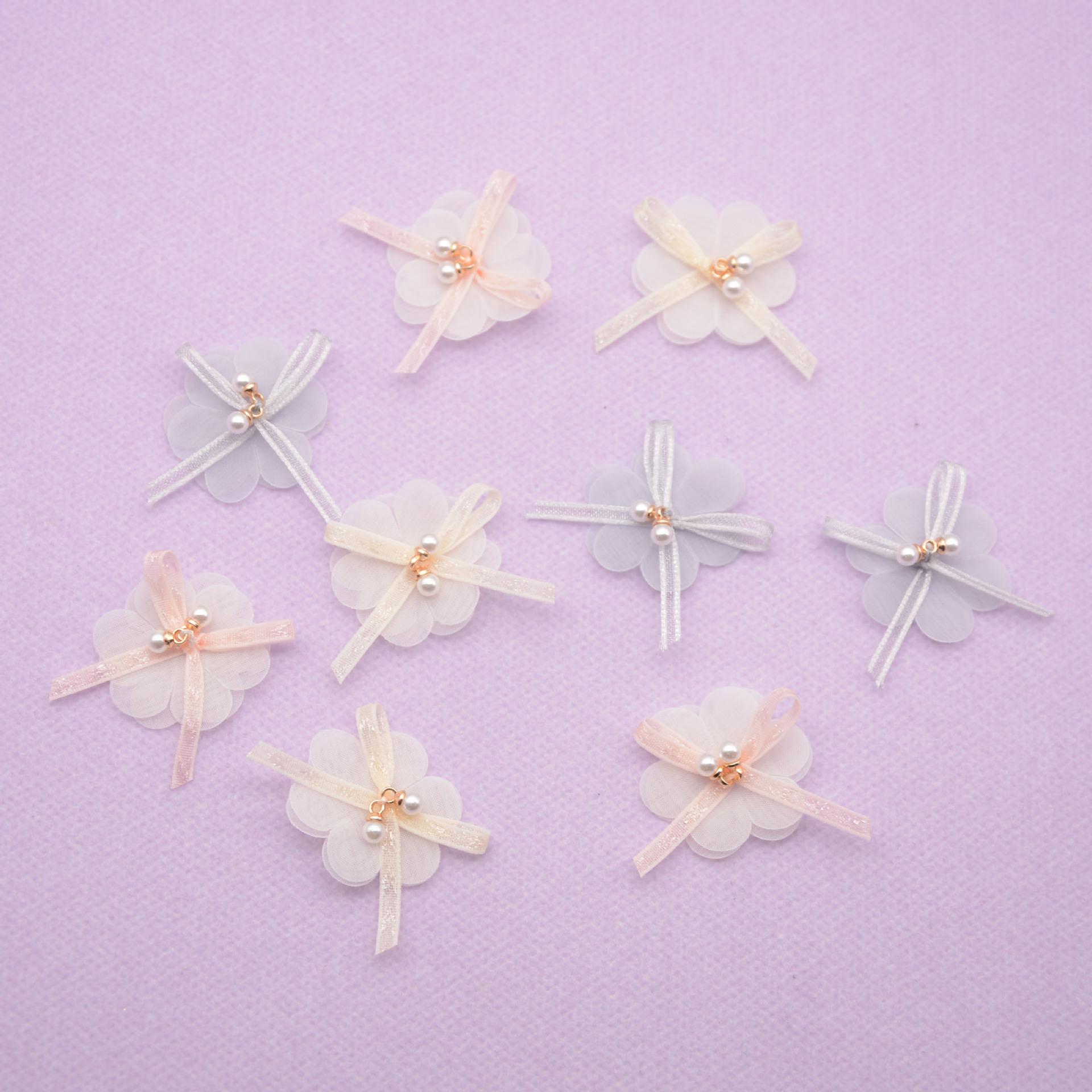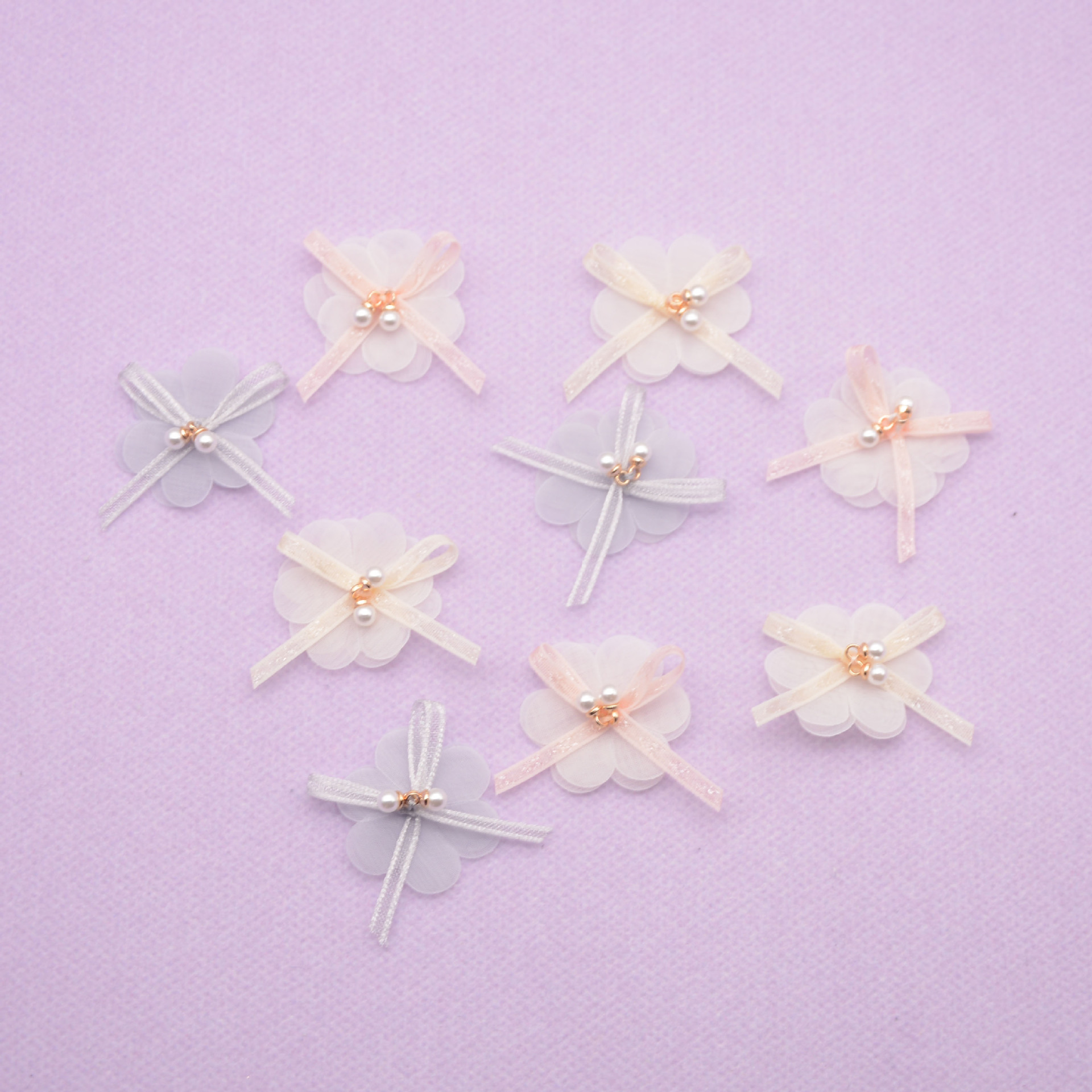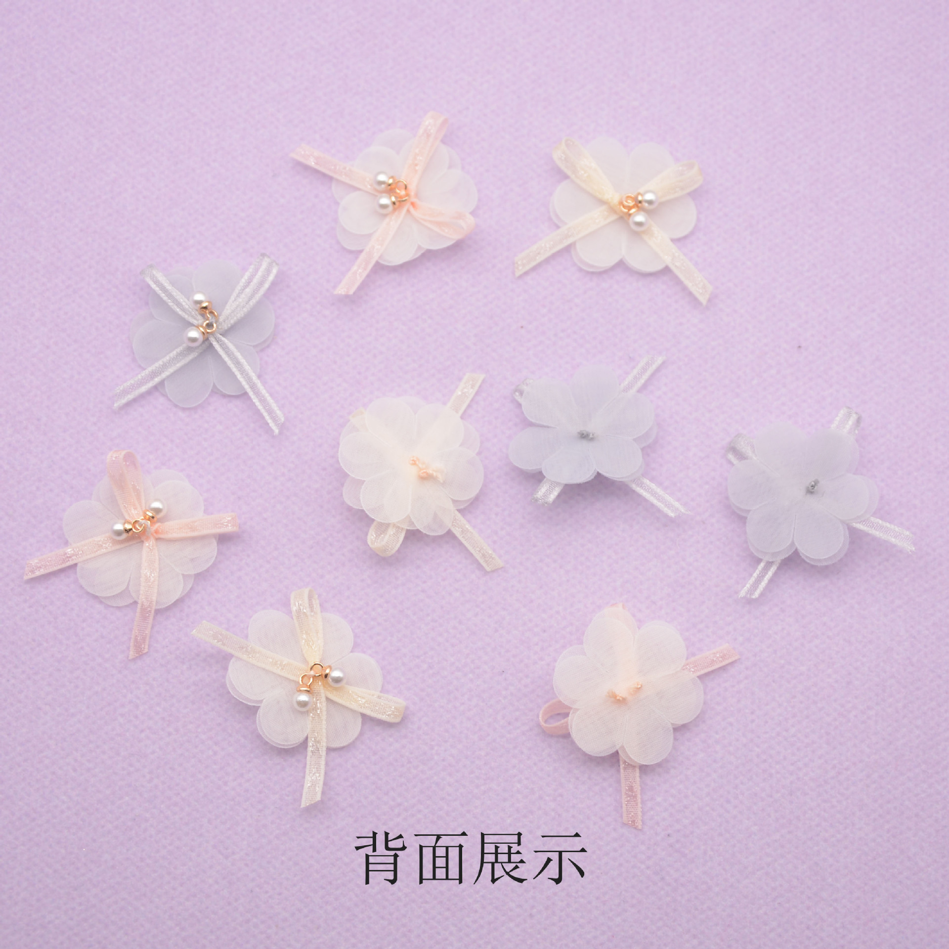 新款小花朵网纱蝴蝶结珍珠小配饰DIY手工饰品鞋帽包服饰辅料批发