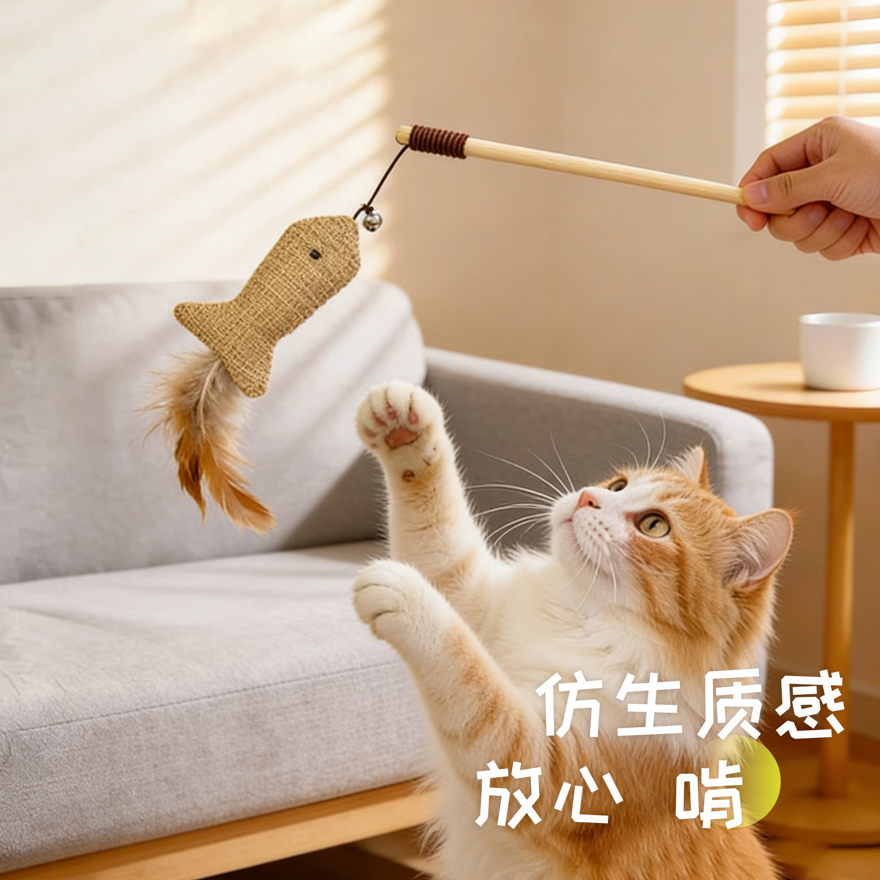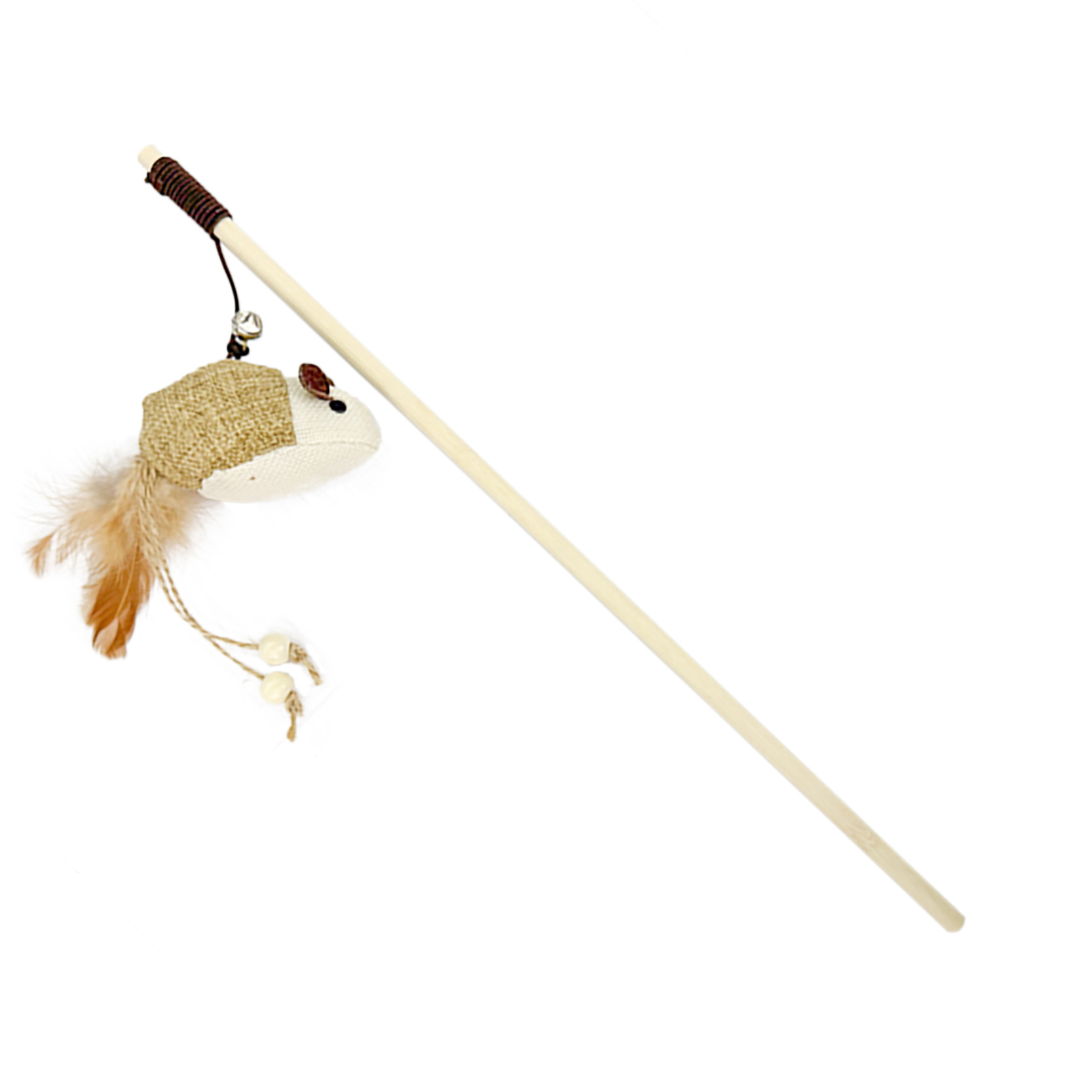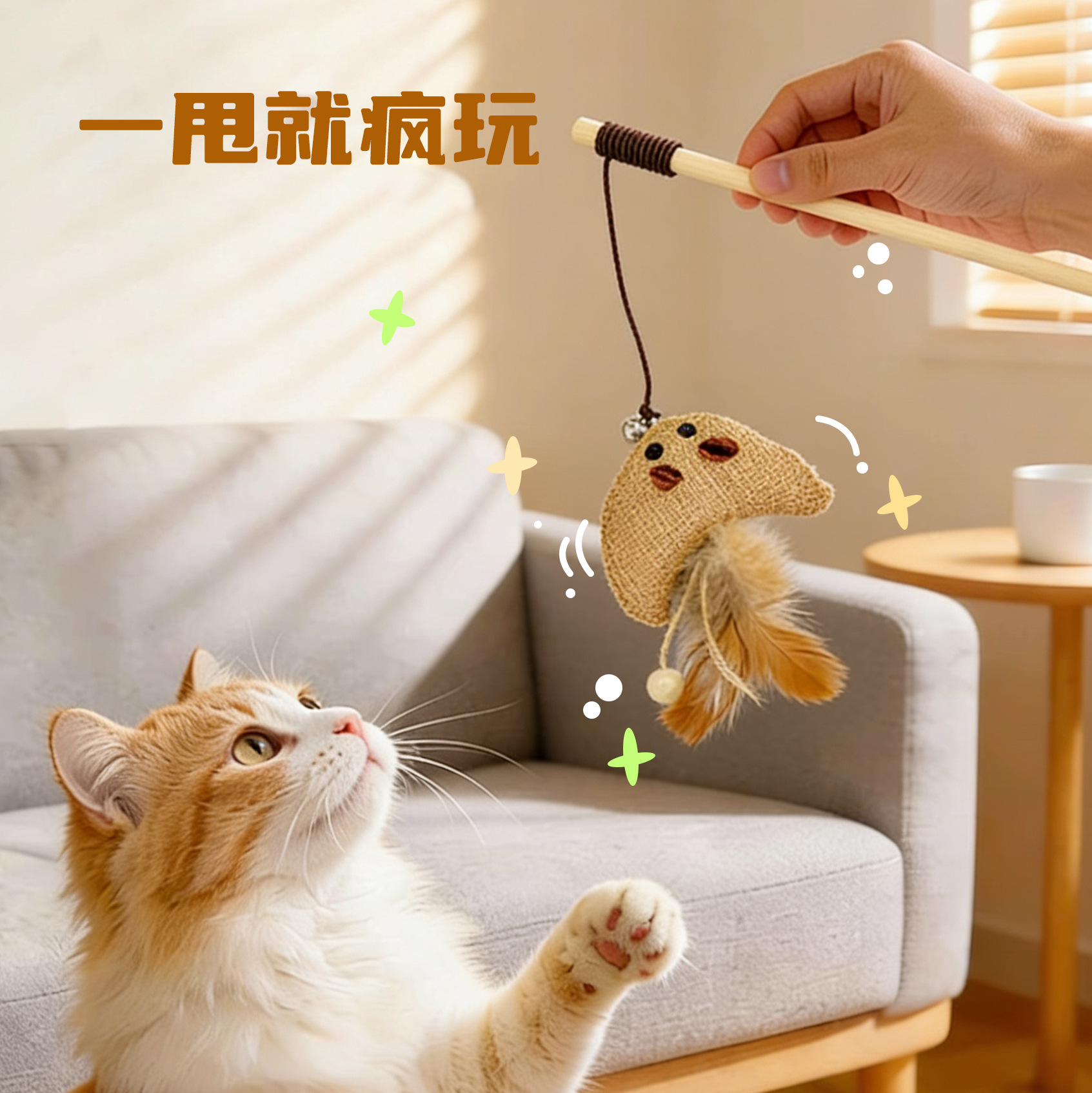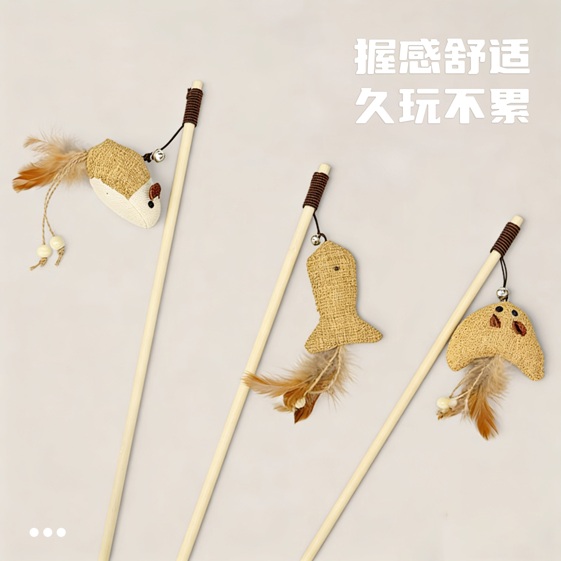 木杆逗猫棒厂家批发耐咬手持互动玩具猫咪用品麻布自嗨解闷逗猫棒