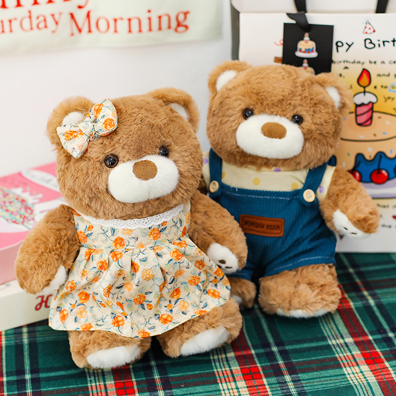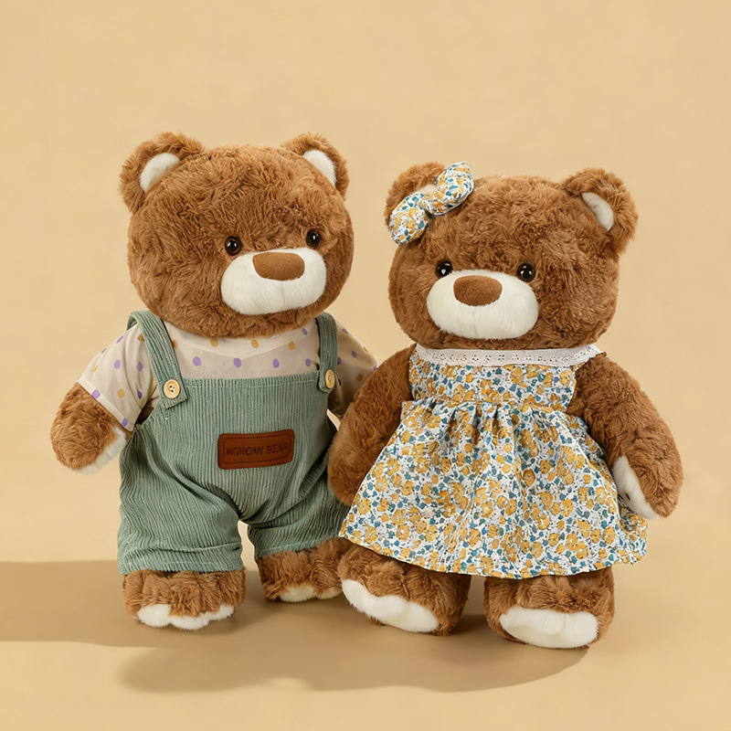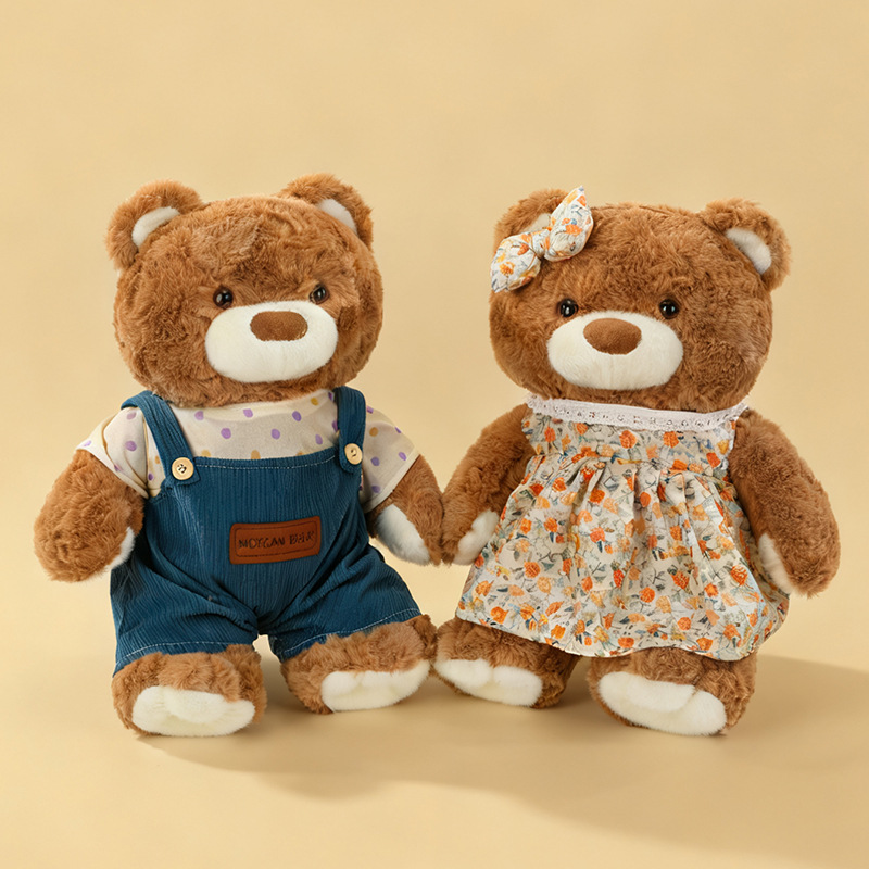 新款跨境蓝白城堡摩根熊玩偶可爱背带裤泰迪熊毛绒玩具儿童公仔