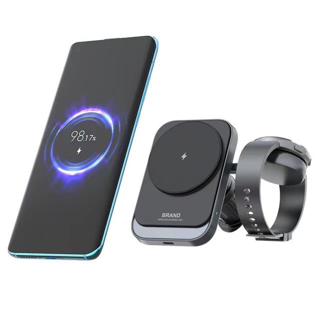新品车载2合1磁性汽车无线充电器充电支架适用于16 15 14智能手表