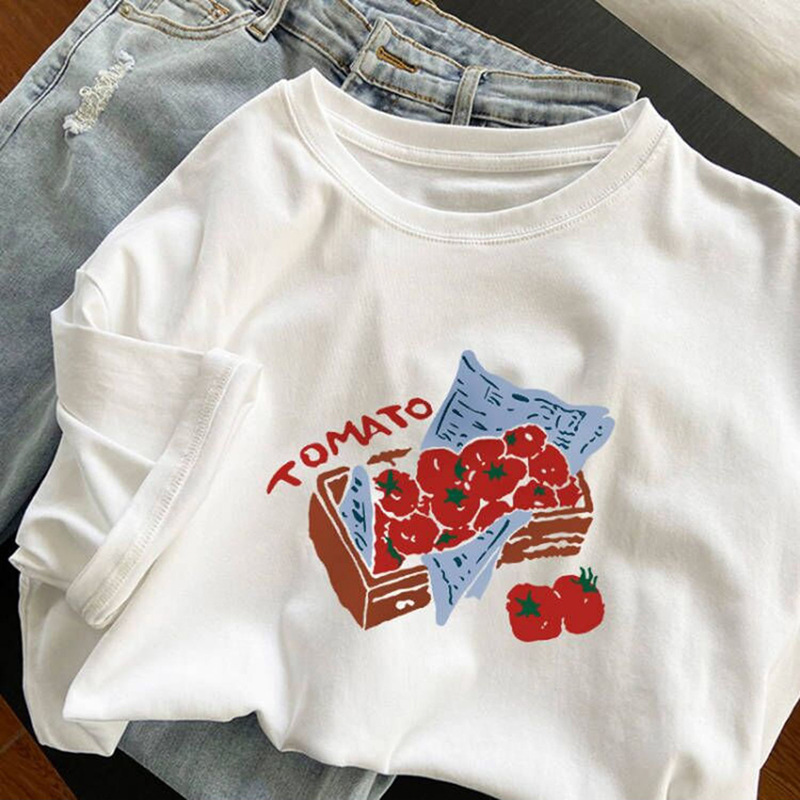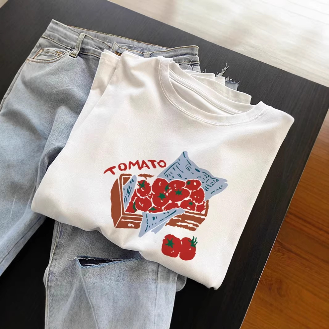 2026年新款原创设计感韩版宽松印花白色短袖t恤女夏季上衣ins潮牌