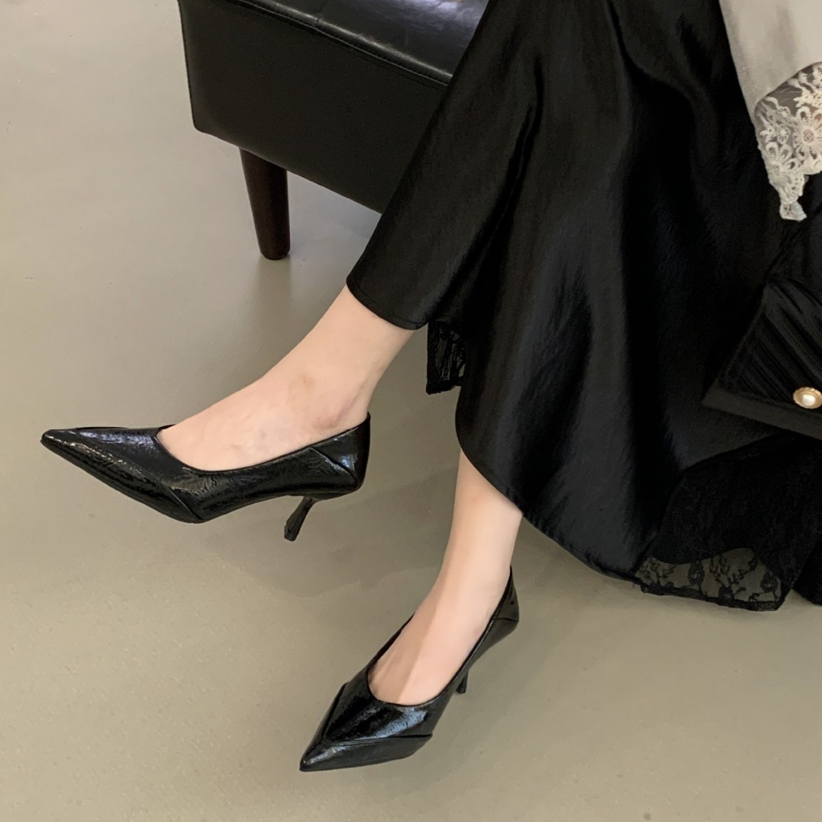 2026新款细高跟拼接软皮浅口套脚百搭高跟鞋通勤工作时装配裙女鞋