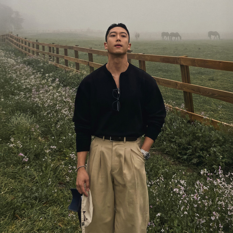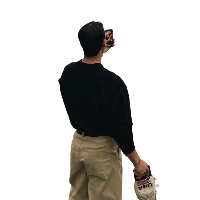 人夫感半拉链长袖T恤男美式重磅小领口高级感痞帅POLO衫长袖上衣