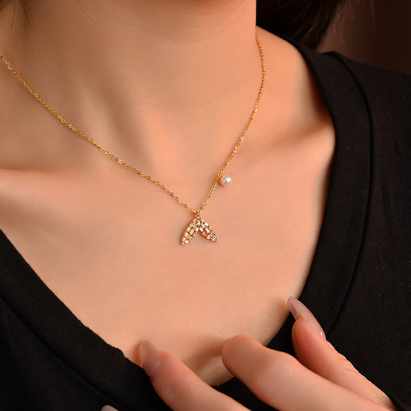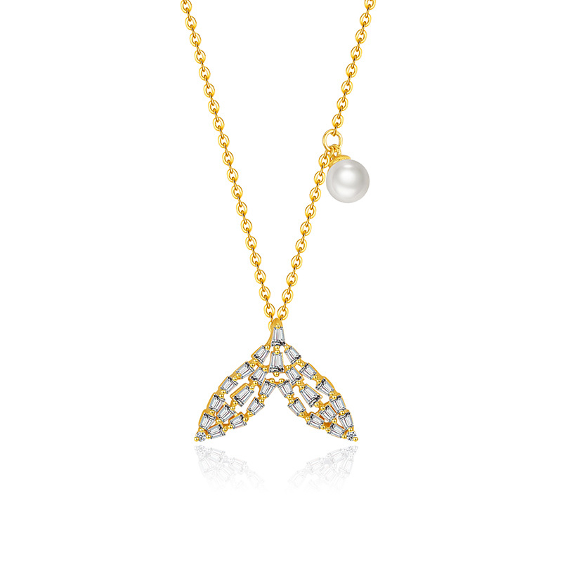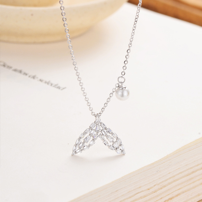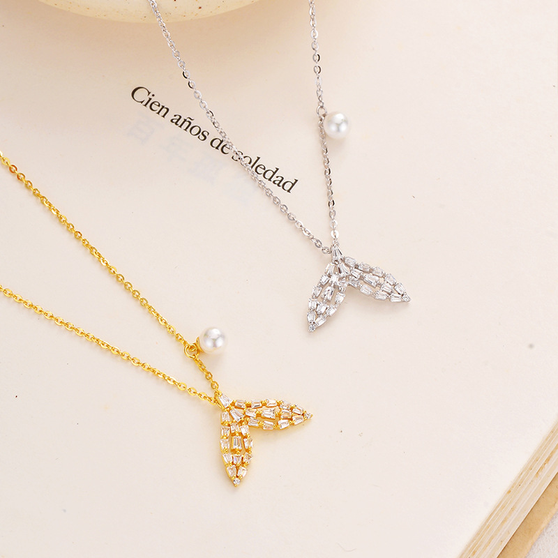 人鱼之泪925纯银项链女高级感轻奢锆石贝珠气质珠宝胸链吊坠饰品
