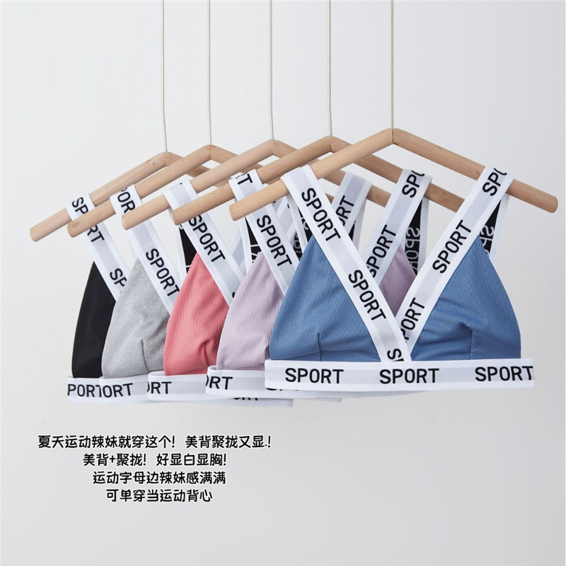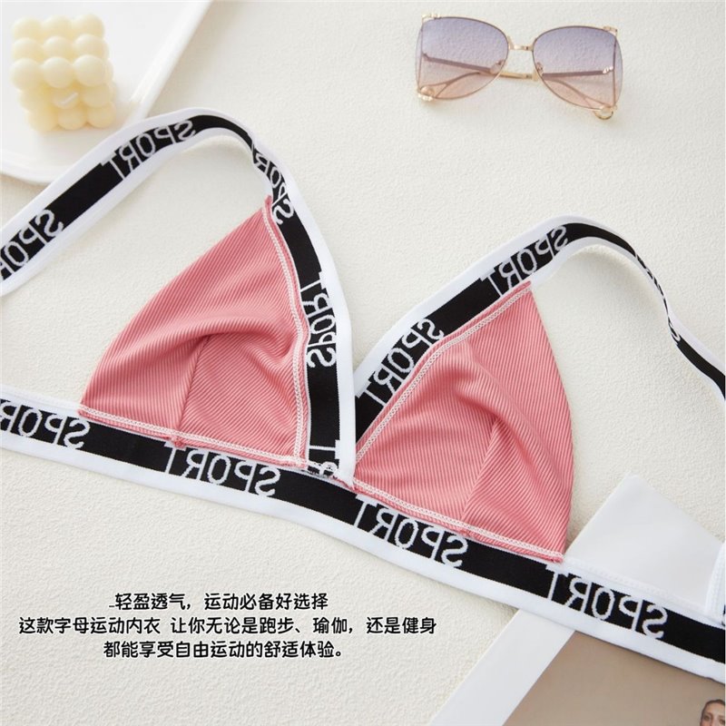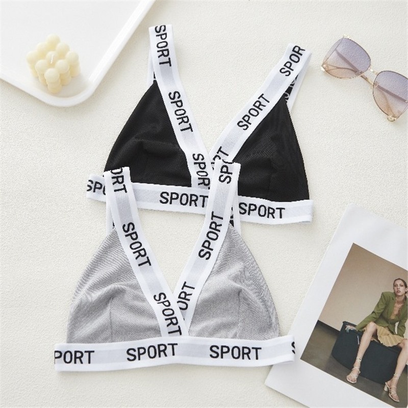 跨境亚马逊欧美风螺纹字母拼接撞色内衣女裹胸三角杯抹胸背心文胸