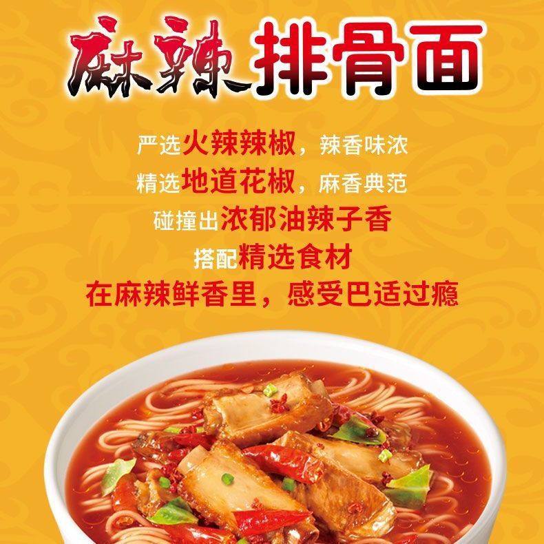 包装规格中桶 麻辣排骨味面【108g×12桶/箱】