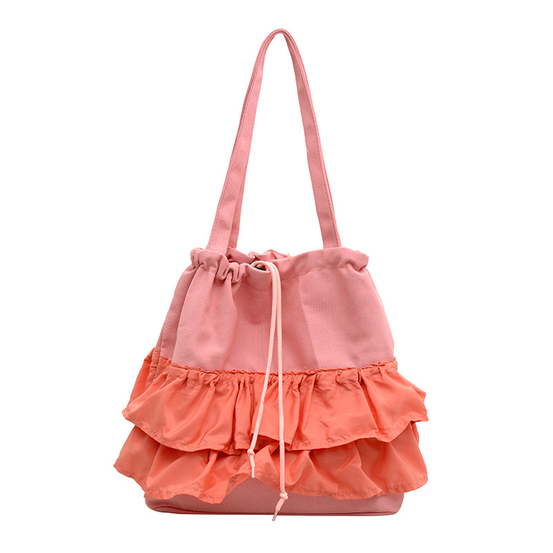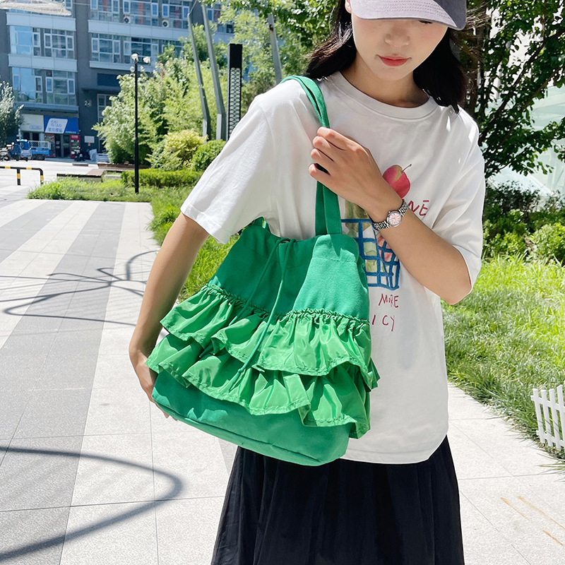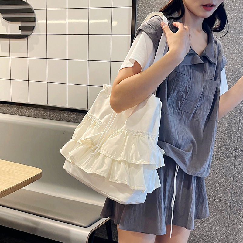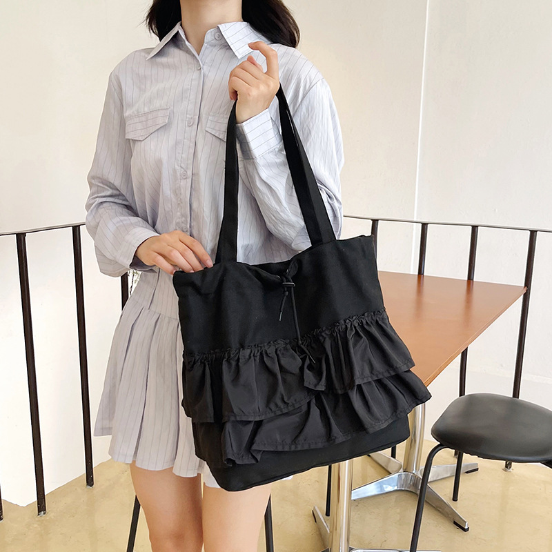 2026韩版新款潮裙边皱褶大容量托特包女慵懒风休闲简约帆布包包女