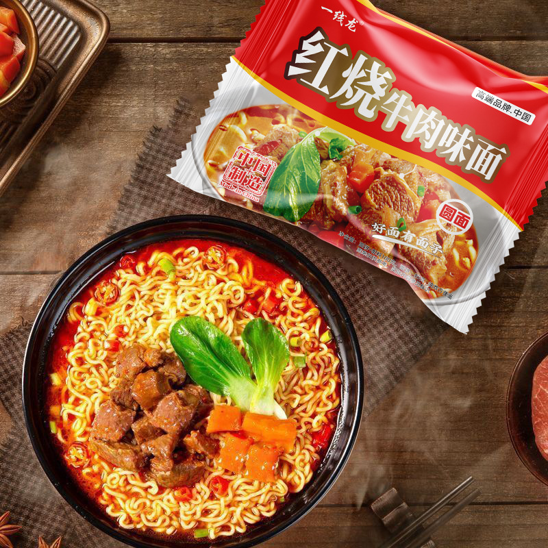 一线龙方便面整箱袋装劲爽红烧牛肉经典美味速食牛肉面全家共享