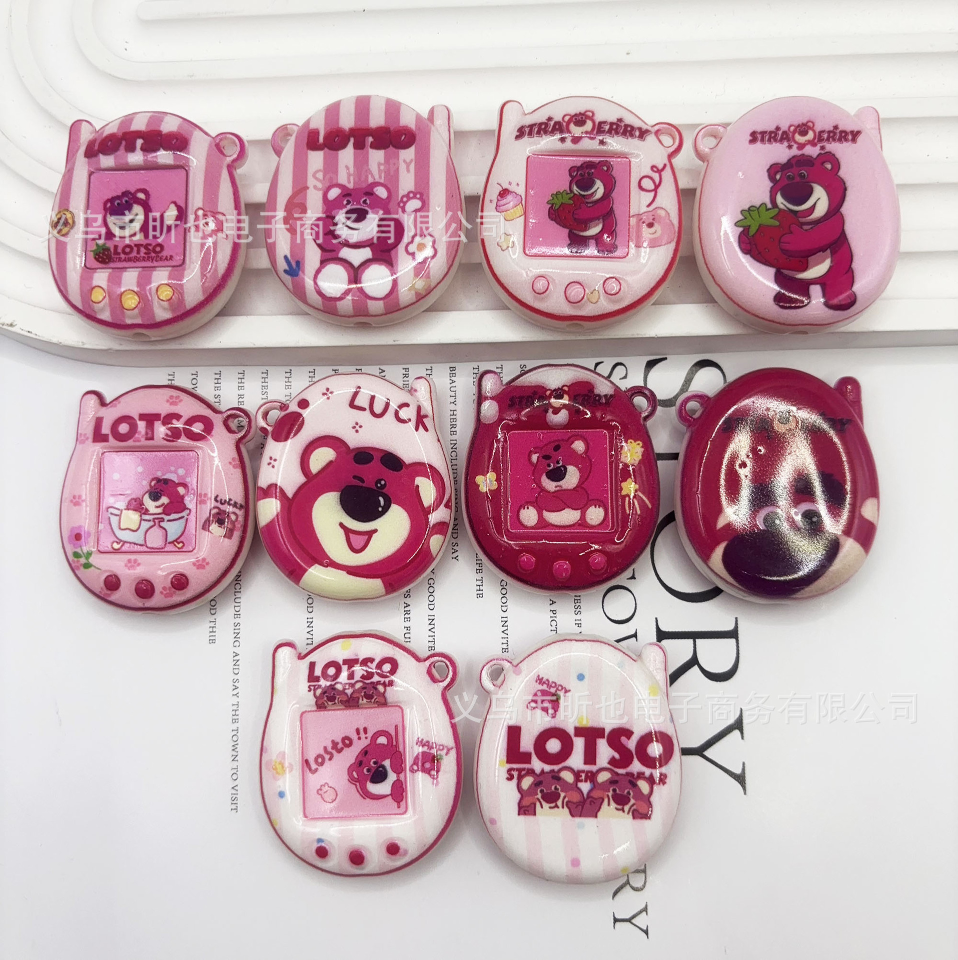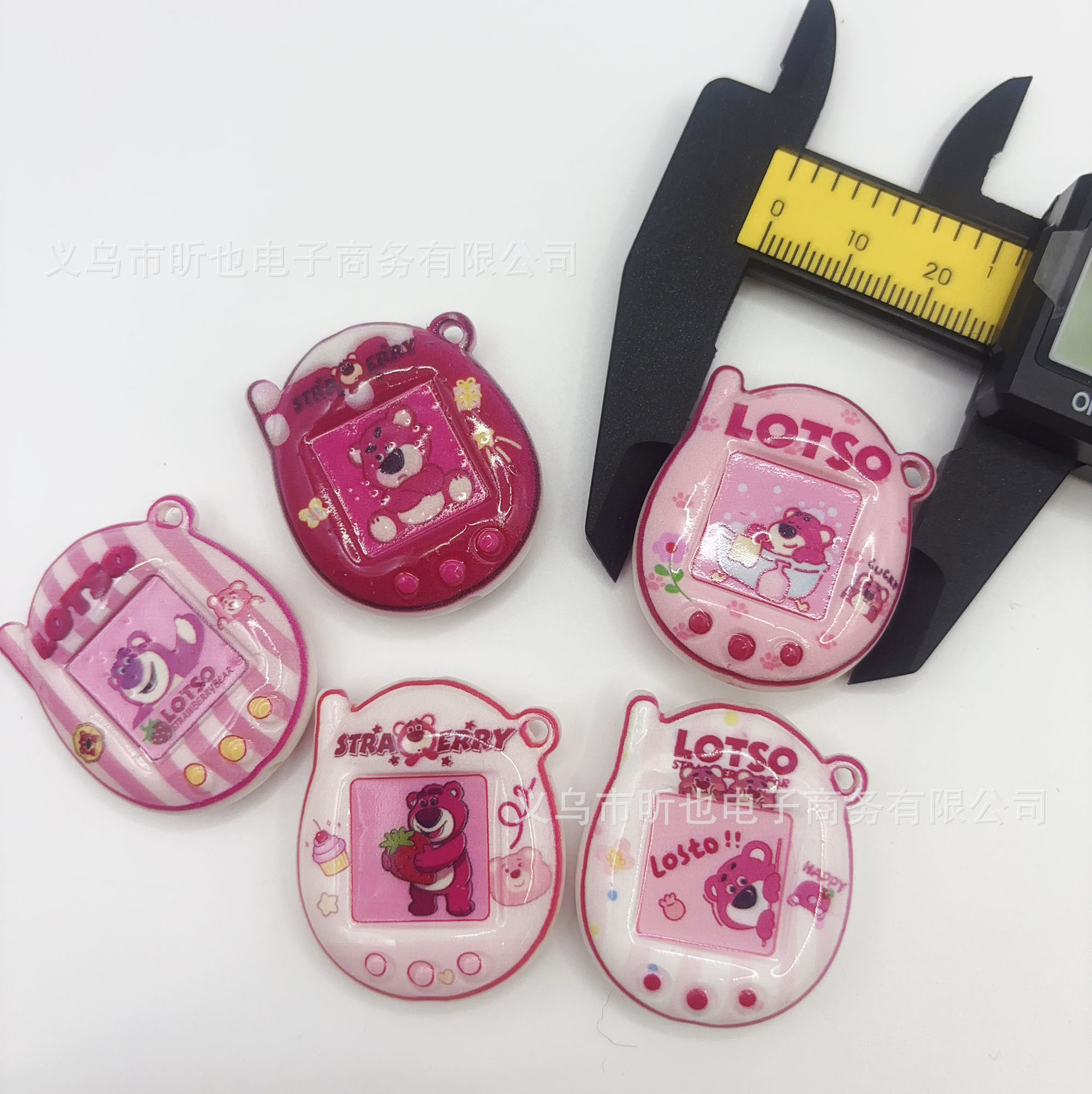通孔拓麻歌子草莓熊双面印花串珠笔配件手机链DIY饰品DIY材料