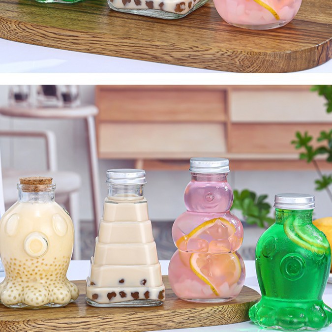 异形玻璃瓶奶茶瓶卡通饮料果汁外卖奶茶鲜榨果汁玻璃瓶工厂批发
