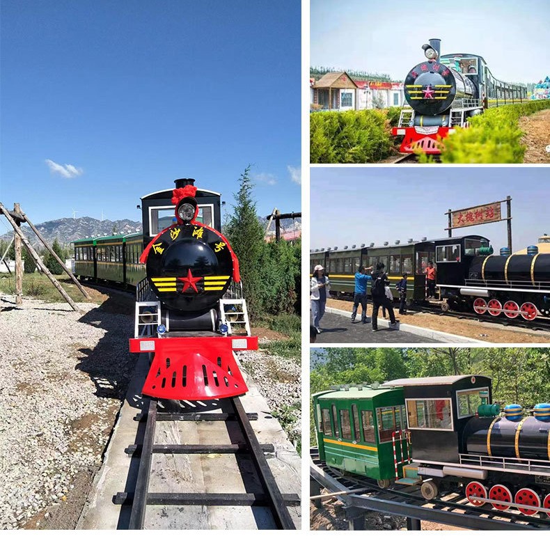 网红景区观光轨道小火车游乐设备户外公园电动蒸汽有轨火车可坐人