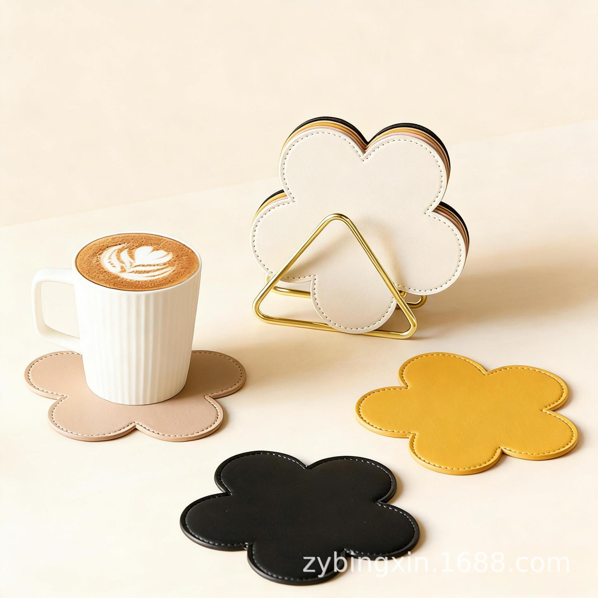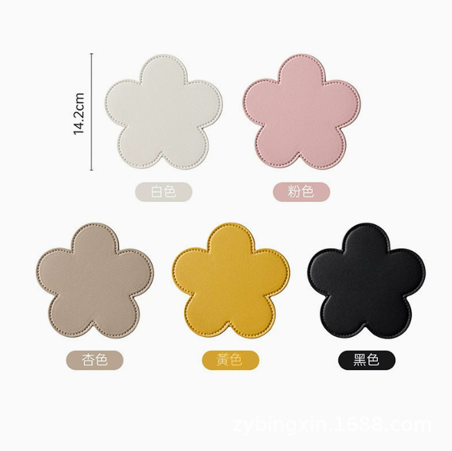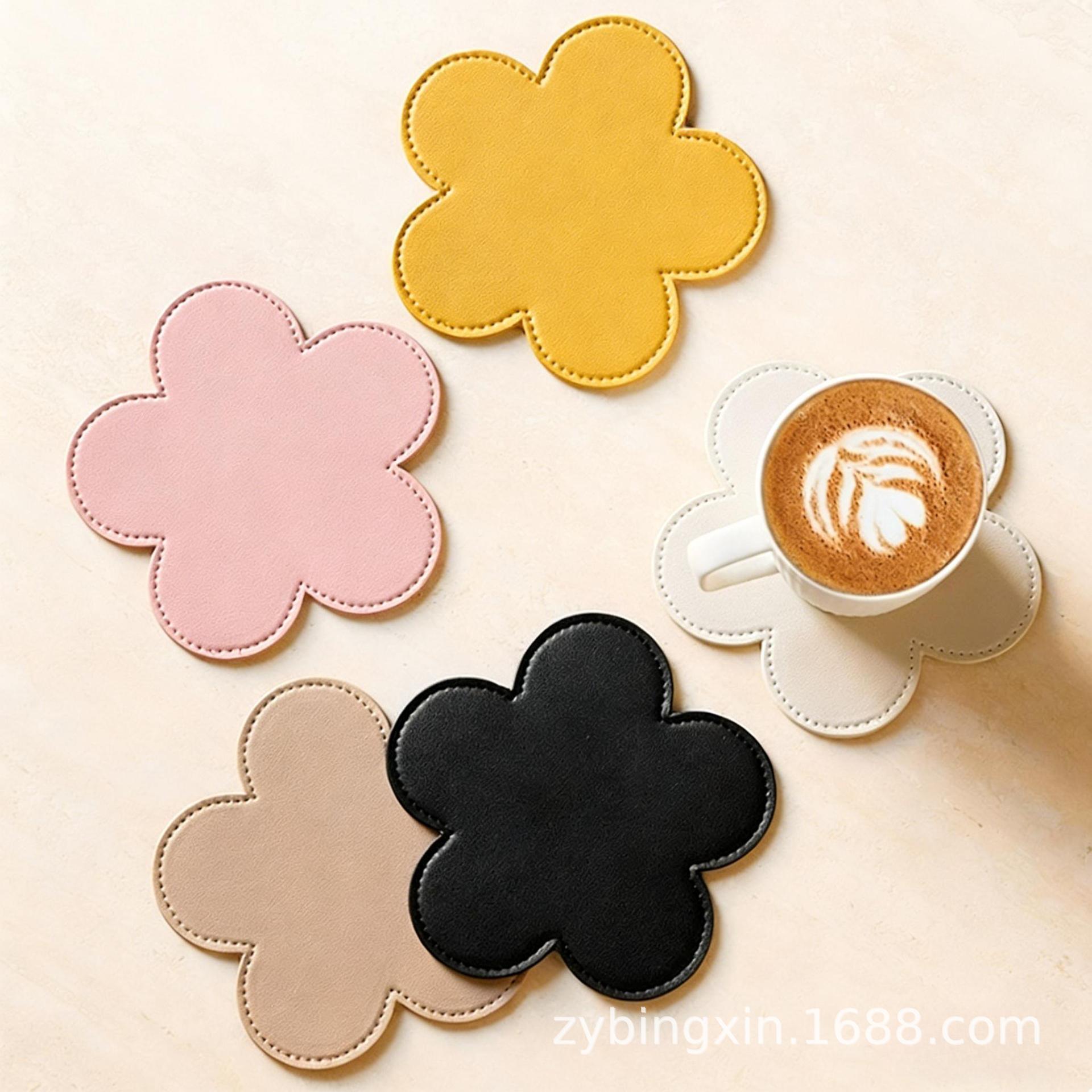 跨境现货花朵pu皮革杯垫新款小清新花朵造型防烫隔热奶茶咖啡杯垫
