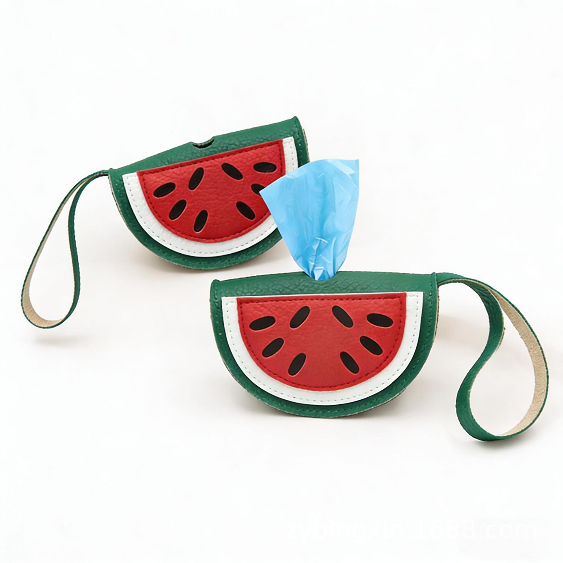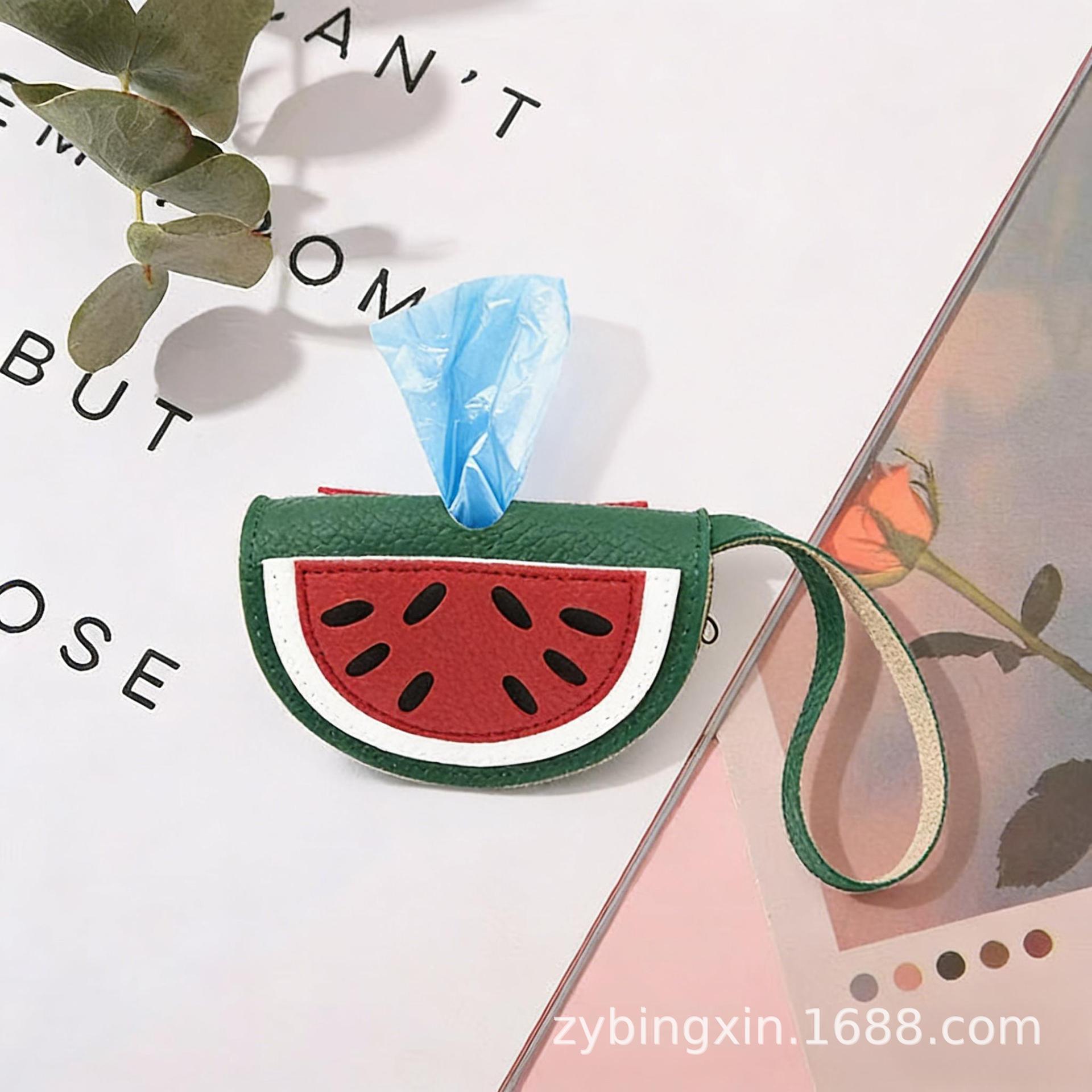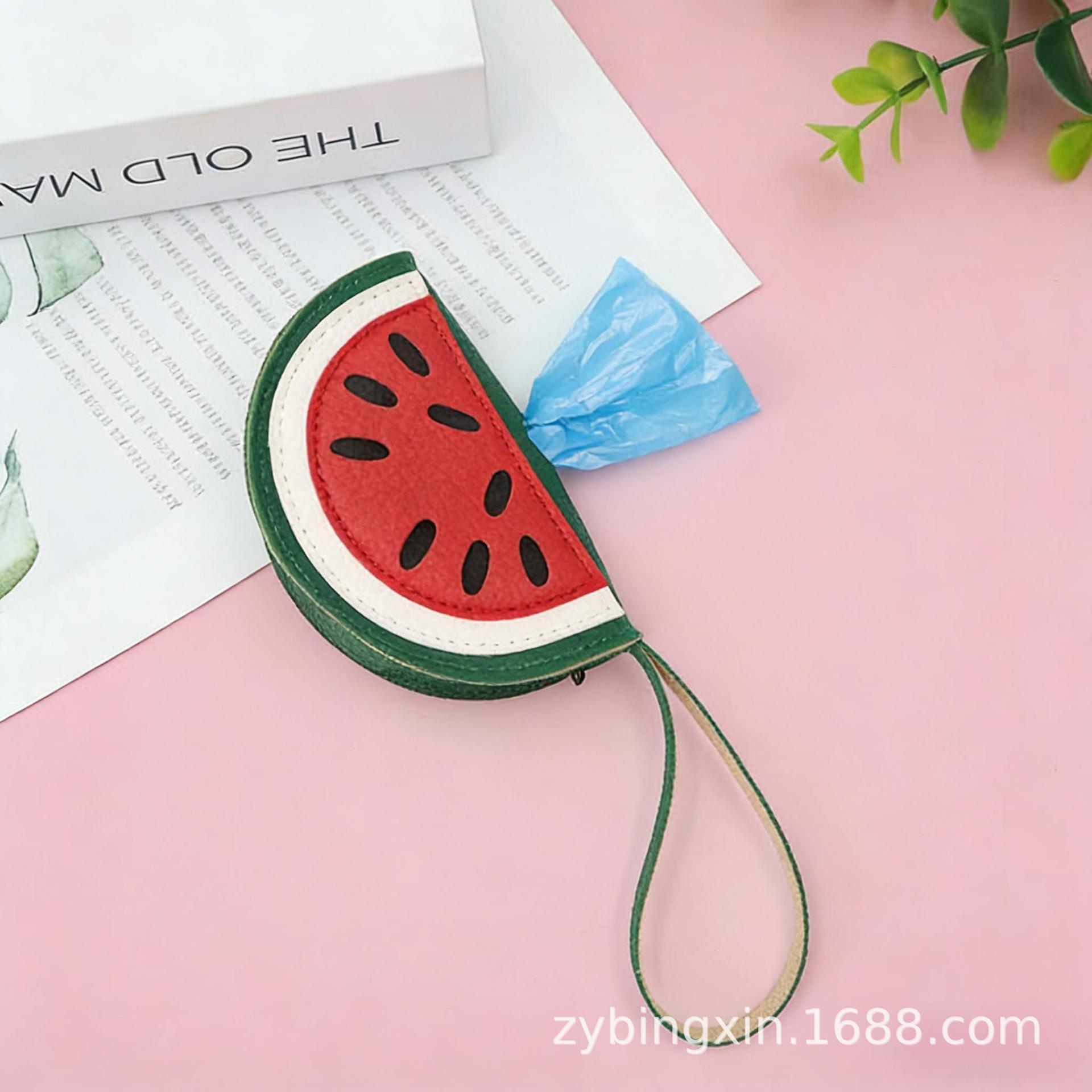 现货新款宠物拾便袋西瓜拉链小包水果零钱包外出遛狗便携式拾便袋