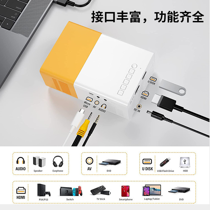 海外跨境YG300投影仪迷你4K高清儿童手机投屏家用礼品黄白投影机