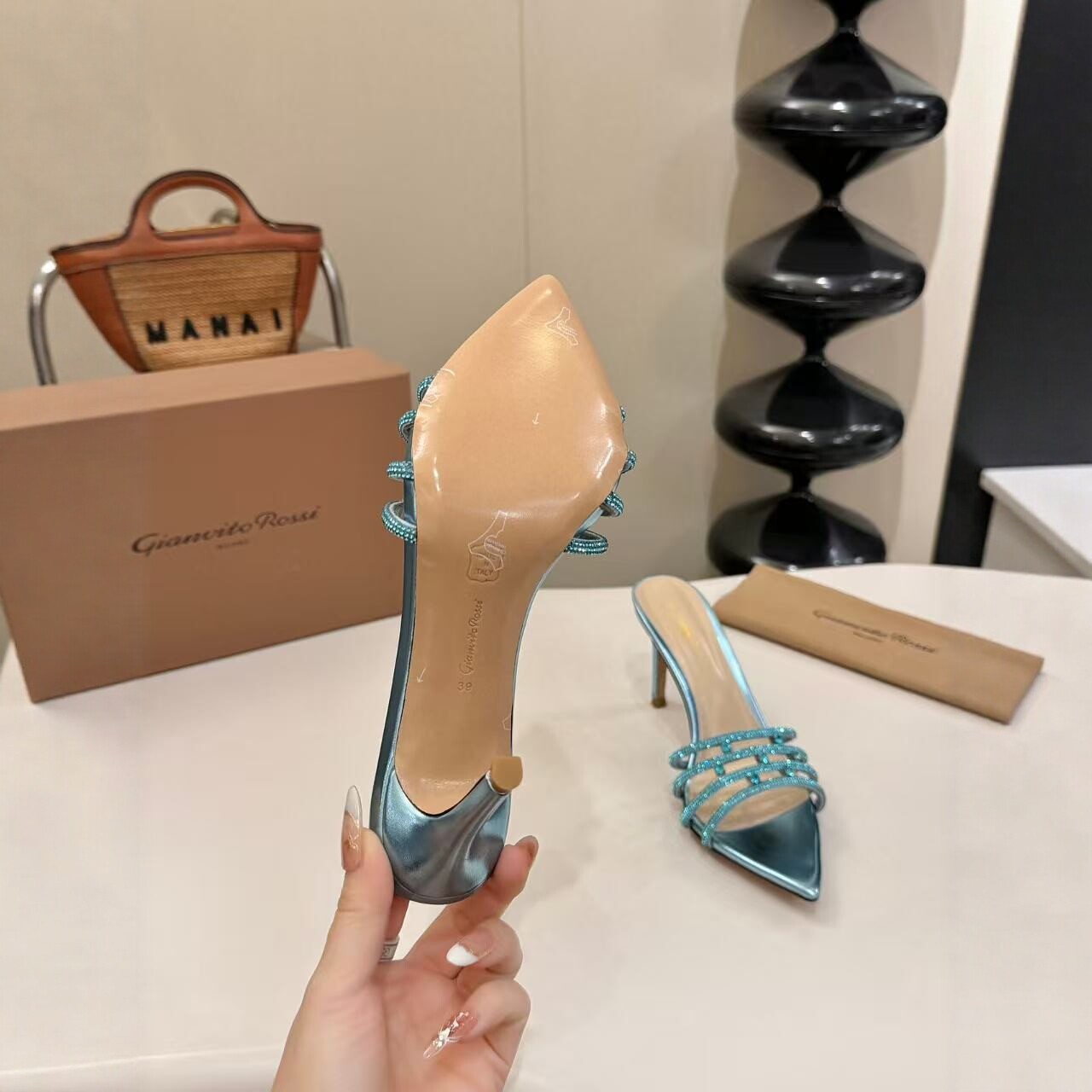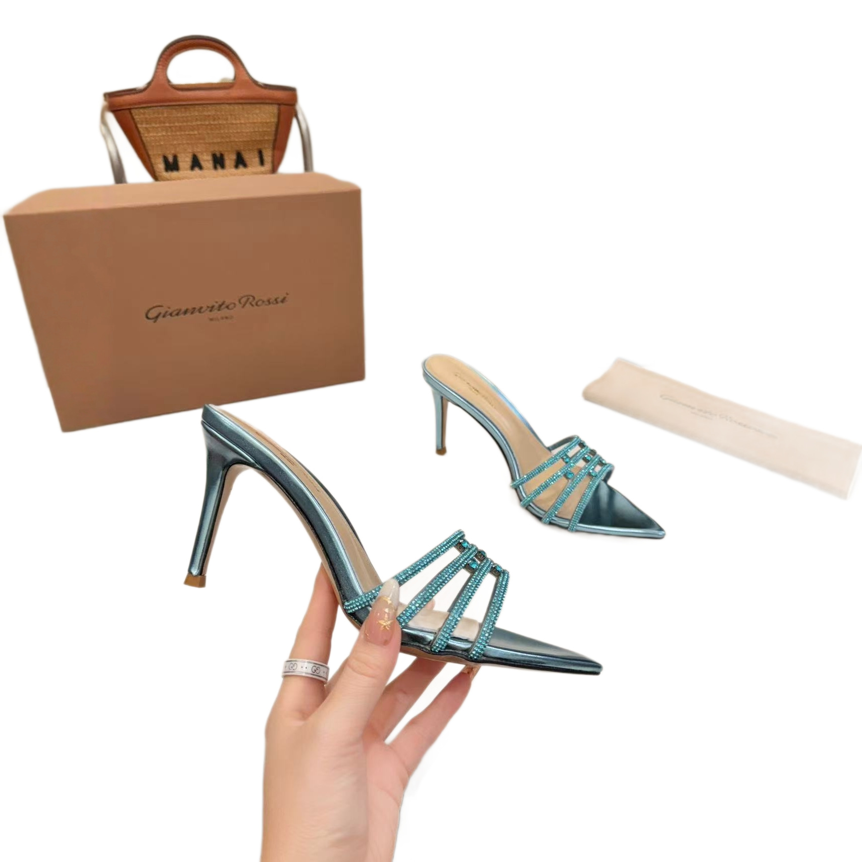 广州发货真皮高跟凉鞋女细跟透明后绊带方头水台欧美风时尚走秀鞋