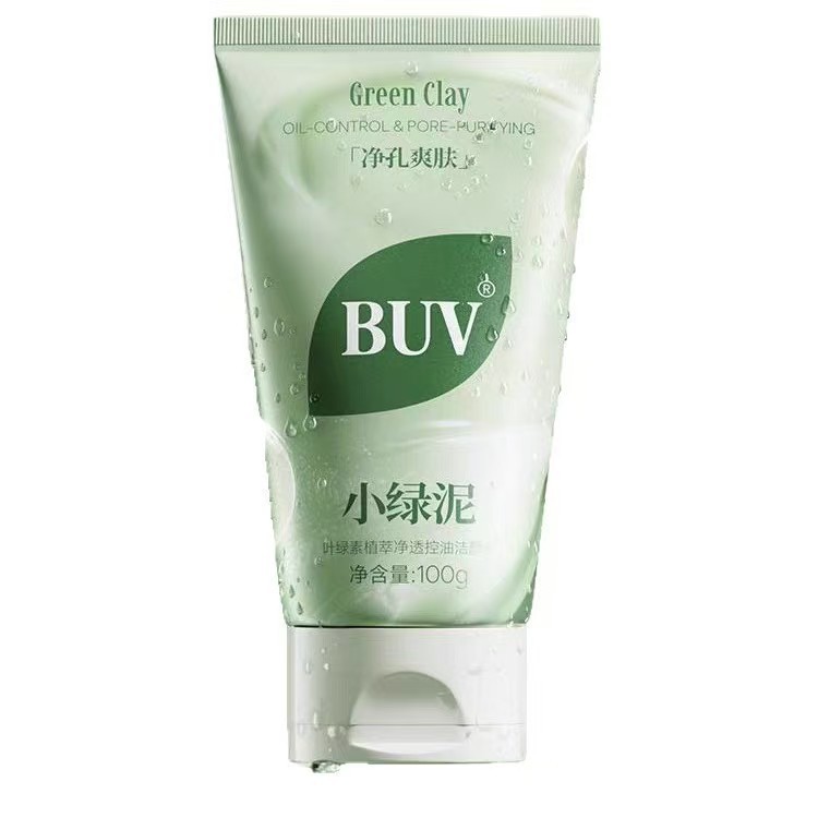 新BUV叶绿素 氨基酸小绿泥洗面奶收缩毛孔深层清洁黑头洁面乳代发