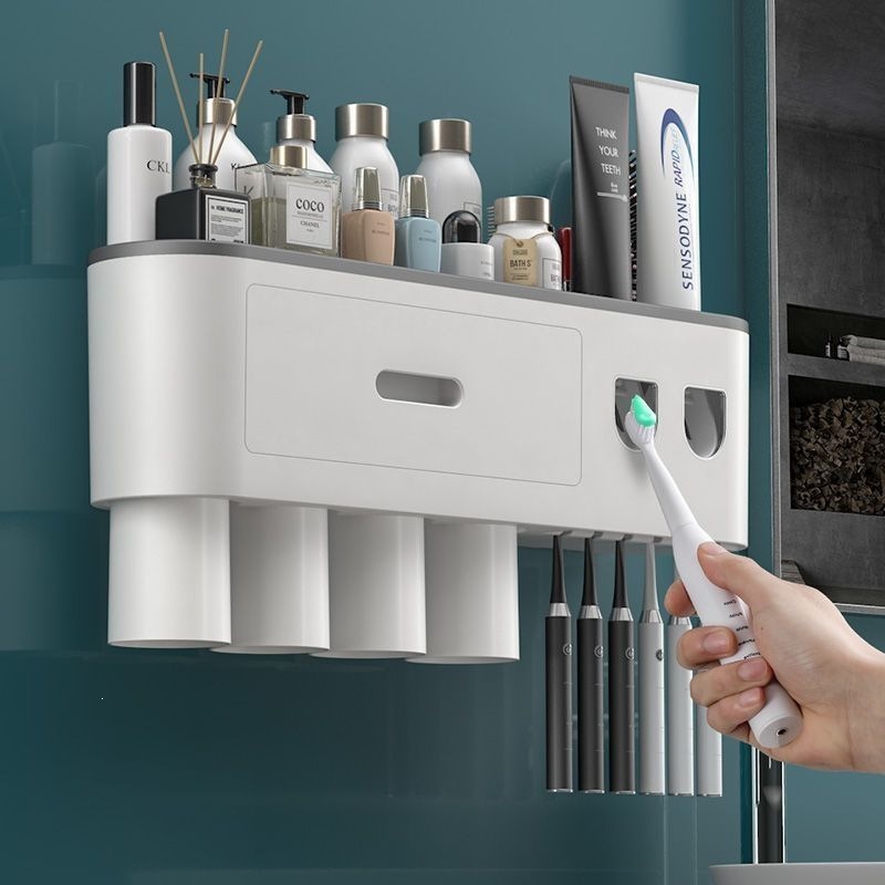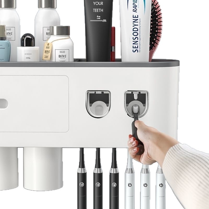 牙刷置物架免打孔漱口杯刷牙膏牙杯收纳卫生间壁挂式架子电动套装