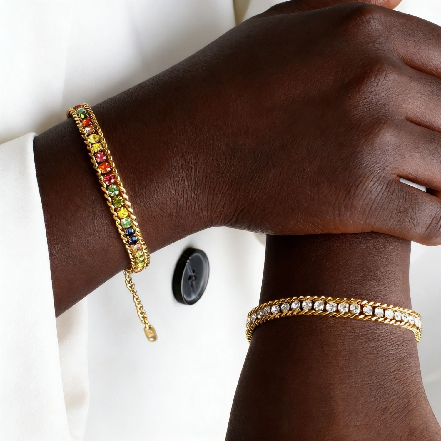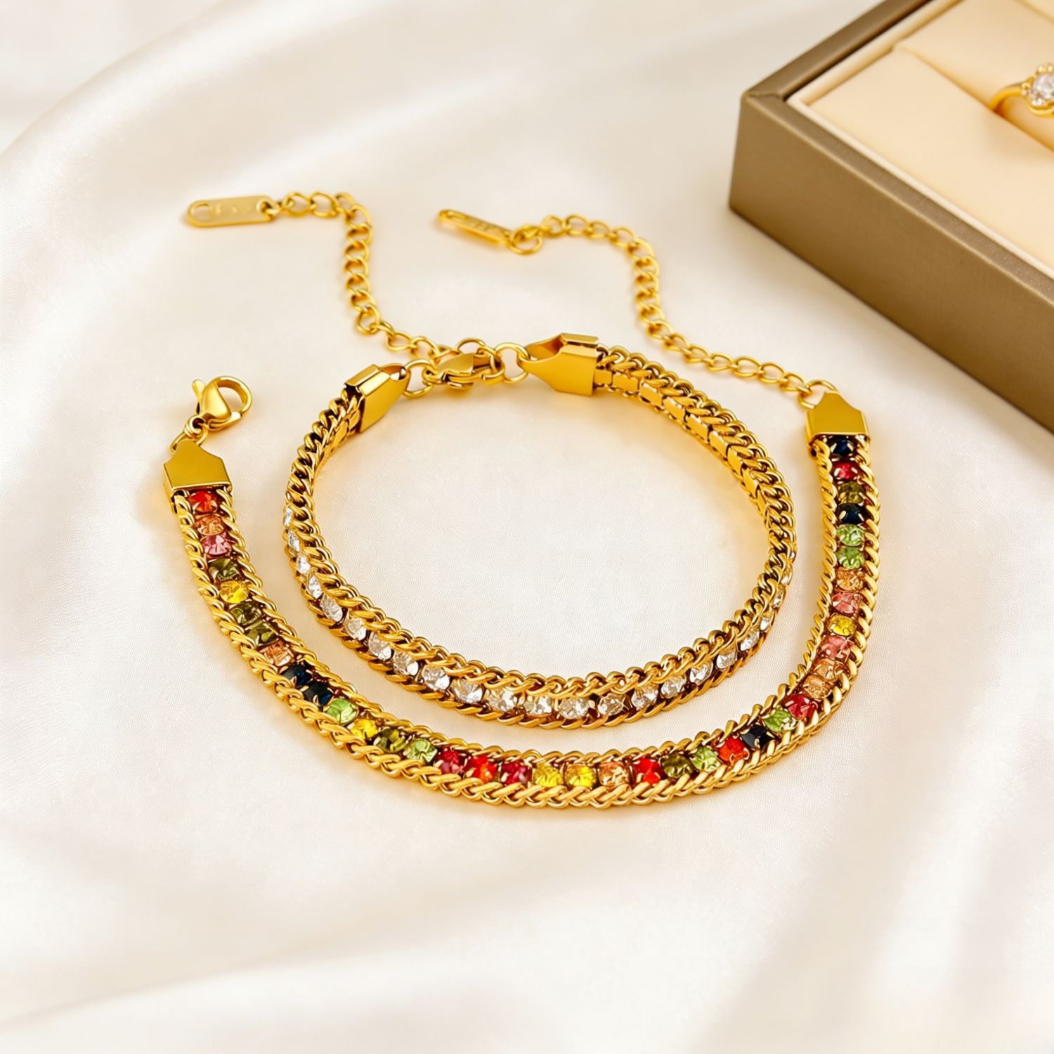跨境潮流不锈钢真空真金18k电镀多色方钻气质百搭饰品彩钻手链女